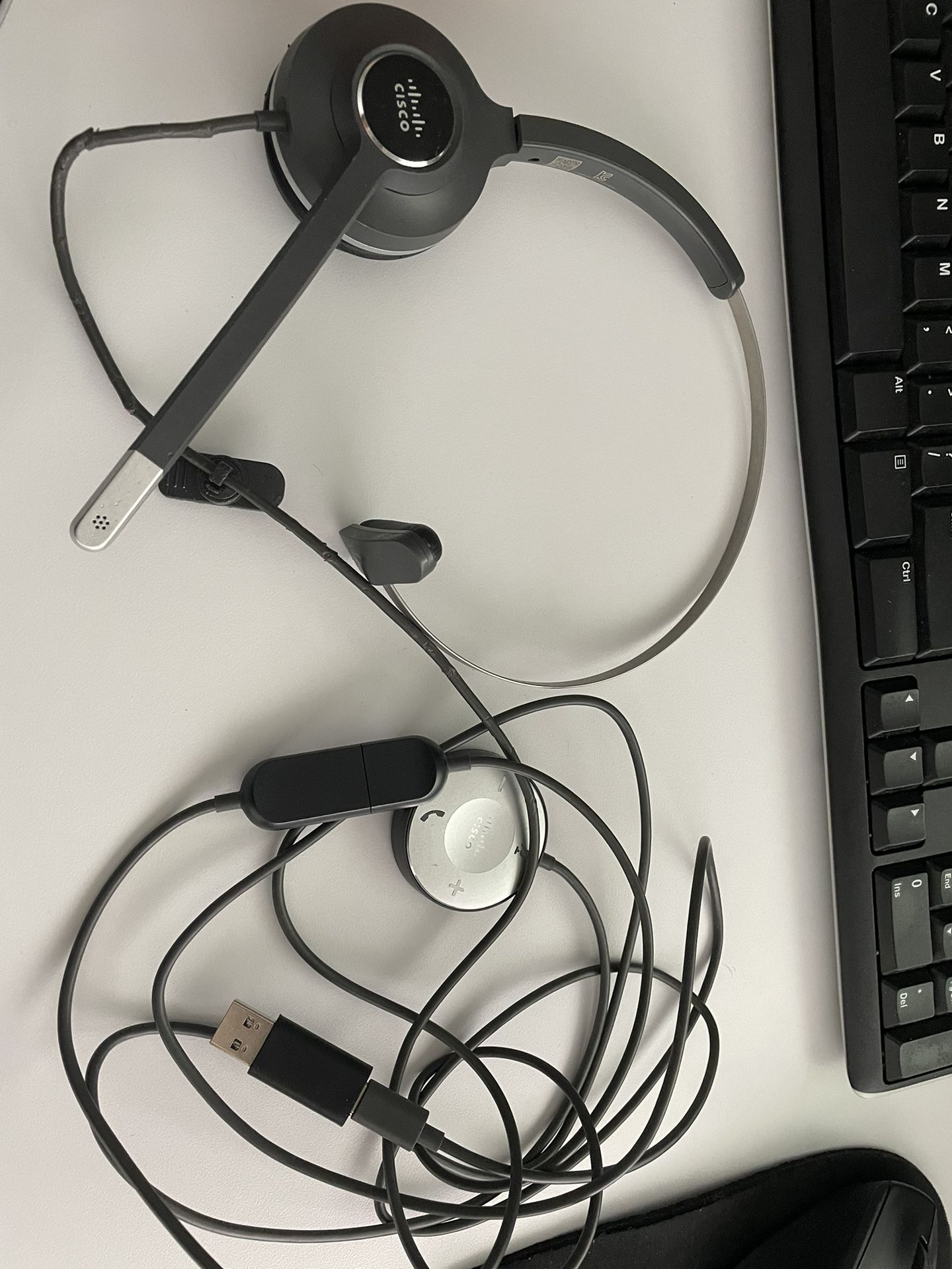 Cisco work from home headset I got it used it’s twice and now do not work from home. Great headset for work though very comfortable