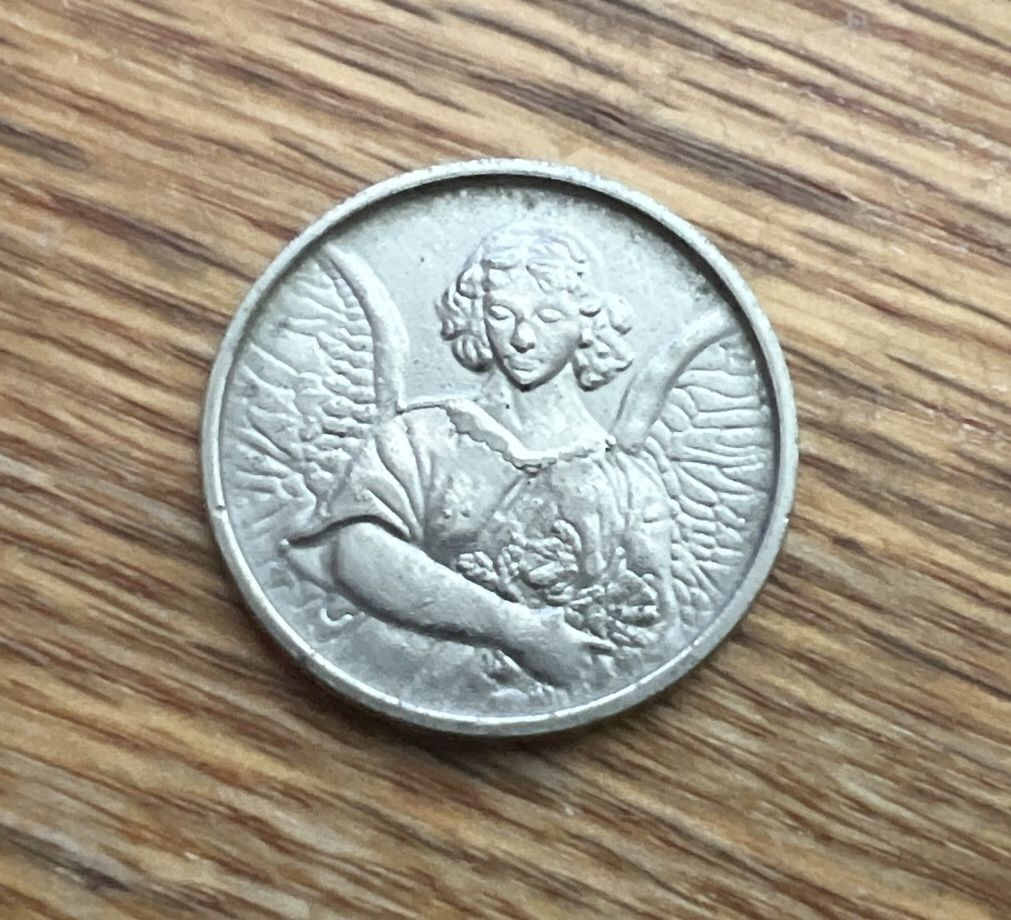 Guardian Angel Token Coin Medal Gold Tone Metal/ winged Angel coin