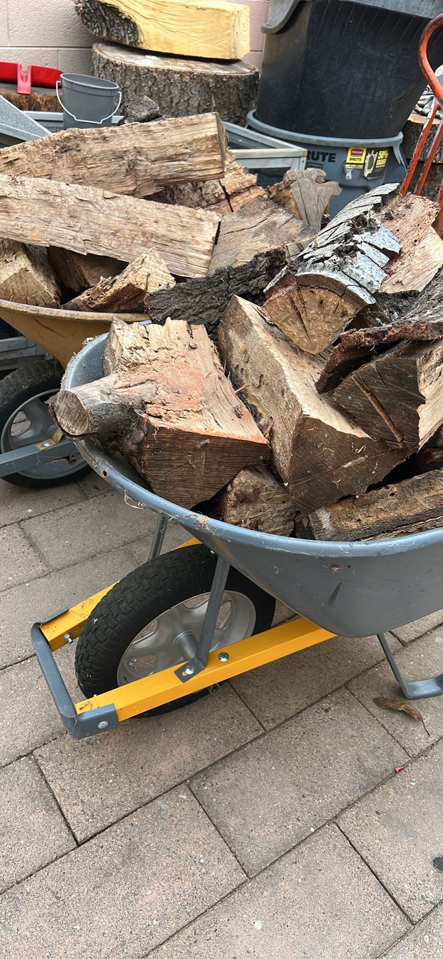 firewood ready to burn $20 a wheelbarrow 5 or more can be delivered for free