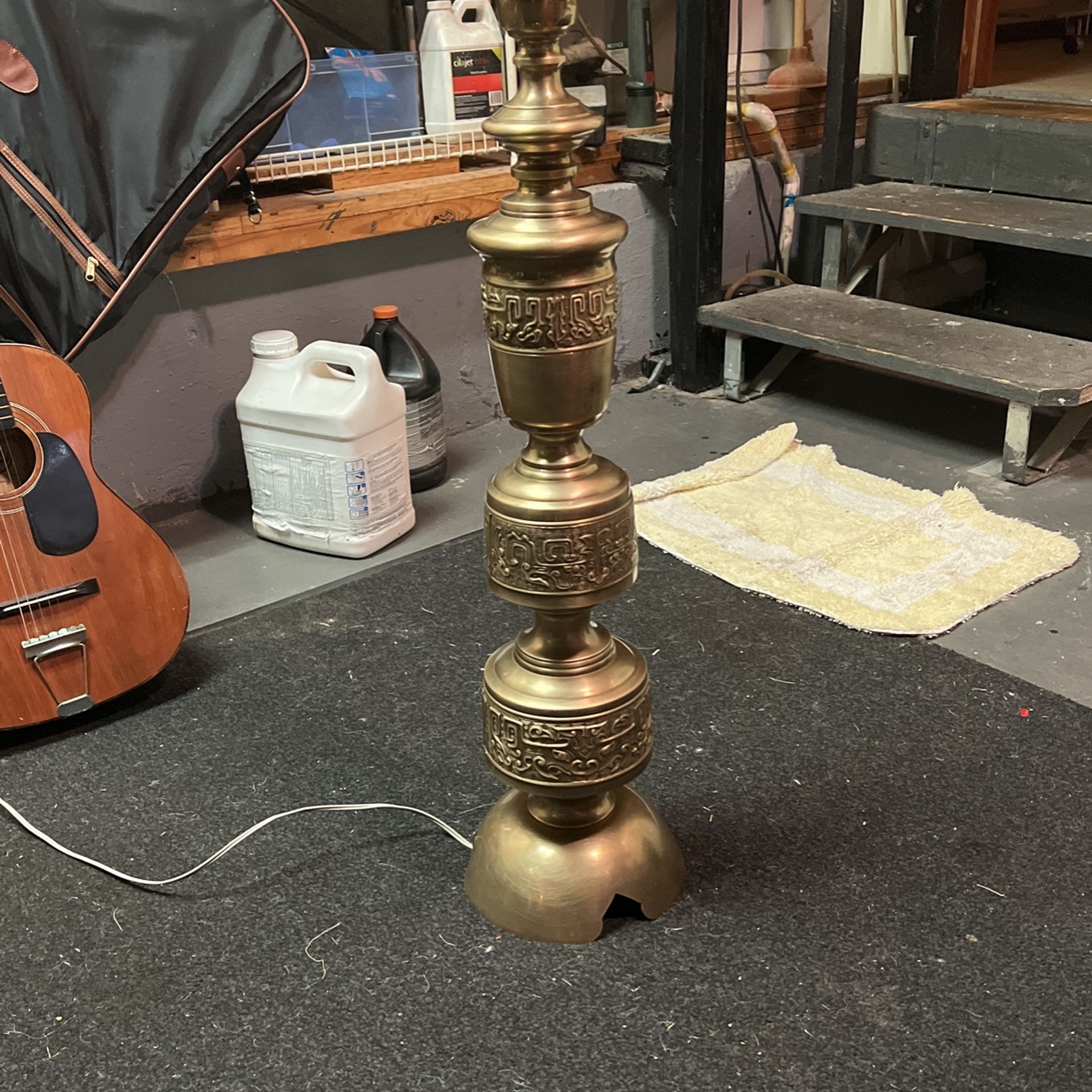 Lamp from Japan brass it’s 44 “ inches tall and the part that holds the lamp shad is or it has been or the weld that holds it up right is apart now o take a pic ,
