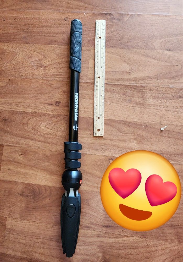 good condition, pick up only The kit consists of a specially adapted version of the PIXI EVO and a 4-section aluminum pole with a ¼ male thread to attach a camera. The Manfrotto PIXI EVO kit is designed to support small 360° cameras, this mini tripod has two leg angles. The 4 section aluminum pole can also be detached from the base and used as a selfie stick. Max height (column extended) - 56.3" Minimum height - 15.7" Closed length - 23.23" Maximum load capacity - 2.2 lbs The Manfrotto PIXI EVO kit is designed to support small 360 Degree cameras. The kit consists of a specially adapted version of the PIXI EVO and a 4-section aluminum pole with a ¼ male thread to attach a camera. The pole can also be detached from the base and used as a selfie stick. About this item Compact, light and always-ready kit for small 360 Degree cameras Mini tripod with two leg angles Legs can be extended in five simple steps 4-section aluminum pole The pole can also be detached from the base and used as a selfie stick.