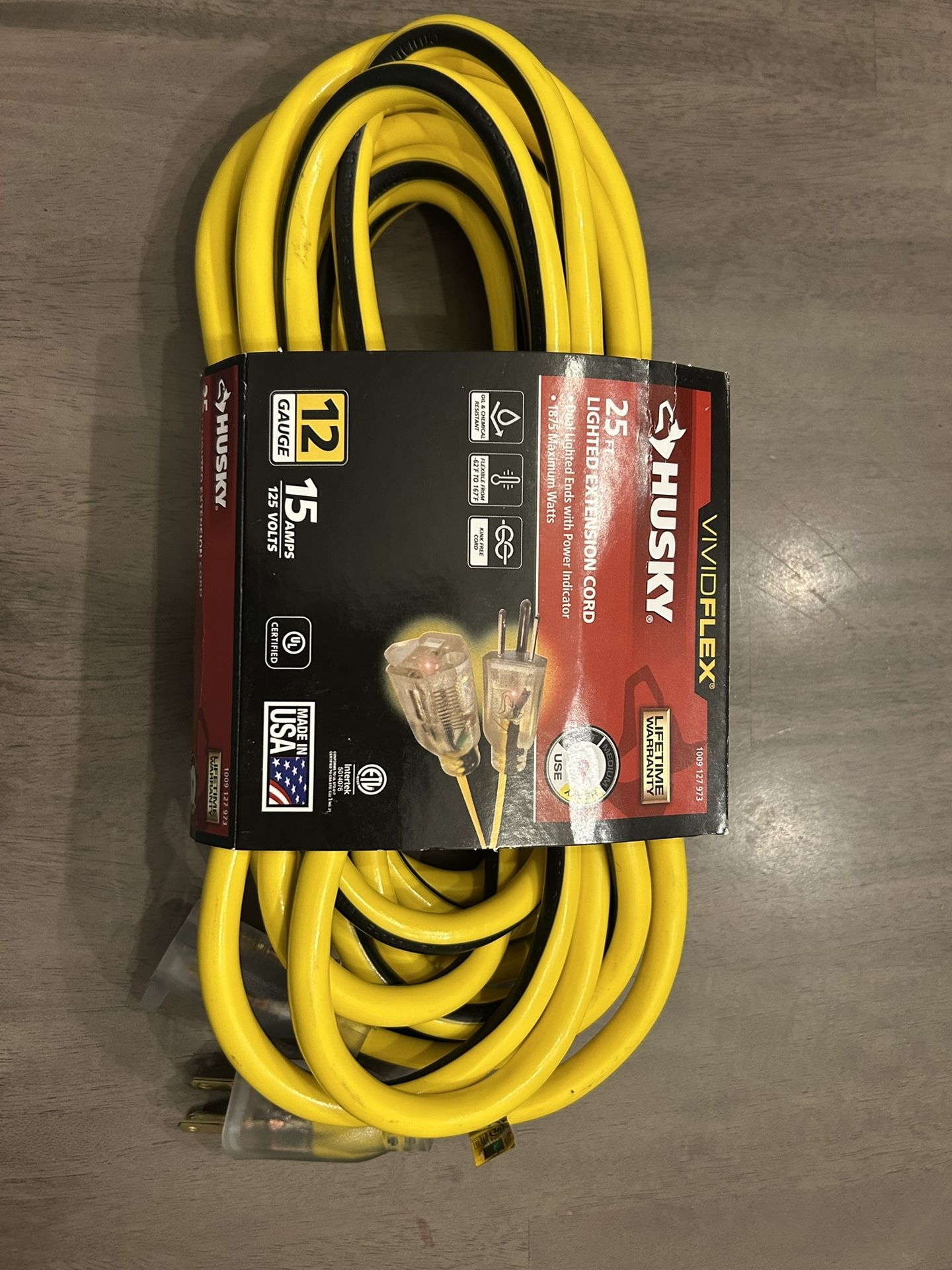 Husky 25 Ft Extension Cord Heavy Duty Life Warranty