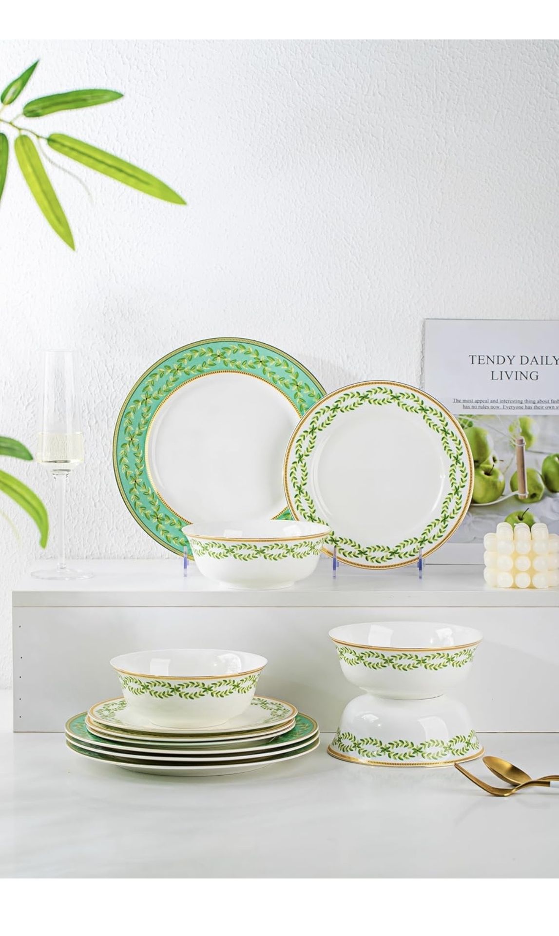 New fhgnysm High Bone China Dinnerware Set, 12-Piece Artistic Green Plates and Bowls, Lightweight & Chip Resistant Ceramic Service for 4, Dishwasher Safe Elegant Kitchen Dining [Lightweight Luxury: High Bone China vs. Ordinary Ceramic] Experience the distinct difference of the FHGNYSM Green Collection. Unlike bulky, heavy stoneware found elsewhere, our dinnerware is crafted from premium High Bone China using traditional heritage craftsmanship. This material offers a sophisticated translucency and a feather-light feel without compromising strength. It elevates your daily meals into a fine dining banquet, offering an elegance that standard thick pottery simply cannot match. [Superior Durability: Fired at 1800°C] While standard ceramic plates are fired at lower temperatures, our set undergoes an intense 1800°C (3272°F) calcination process. This extreme heat creates a diamond-hard, vitrified surface that vastly outperforms regular ceramics in chip and scratch resistance. Whether you are cutting a steak or stacking dishes, our ultra-durable glaze ensures the artistic rose patterns remain vibrant and the surface stays smooth for decades. [Zero-Porous Hygiene & Lead-Free Safety] Ordinary earthenware can absorb moisture and bacteria over time. Thanks to our high-temperature firing, FHGNYSM bowls and plates possess a completely non-porous, high-density surface that rejects grease and odors. Rigorously tested to be 100% Lead-Free and Cadmium-Free, this set provides a safer, healthier eating surface for your family compared to lower-grade industrial ceramics. [Artistic "Green Collection" Aesthetic] Break away from the monotony of plain white dishes. This 12-piece set features an exquisite, fade-resistant green motif that blends classic Chinese artistry with modern utility. The glossy, glass-like finish makes food look more appetizing, serving as a stunning centerpiece for holiday parties, kitchen gatherings, or romantic dinners. It is designed for those who appreciate the fusion of art and functionality. Complete Set for Harmonious Dining This 12-piece dinnerware set includes all the essentials to create a harmonious dining experience: four 10.5-inch dinner plates, four 8-inch salad plates, and four 6-inch bowls. Each piece is designed to work in perfect unison, bringing a touch of elegance and balance to your dining table. Brand new in open box. No missing pieces. We are located close to Russell and Boulder hwy. / Wetlands/Sam Boyd stadium. Sorry we don’t deliver. Ty for checking our lists for more deals in Bed/toys/cars/baby/household/