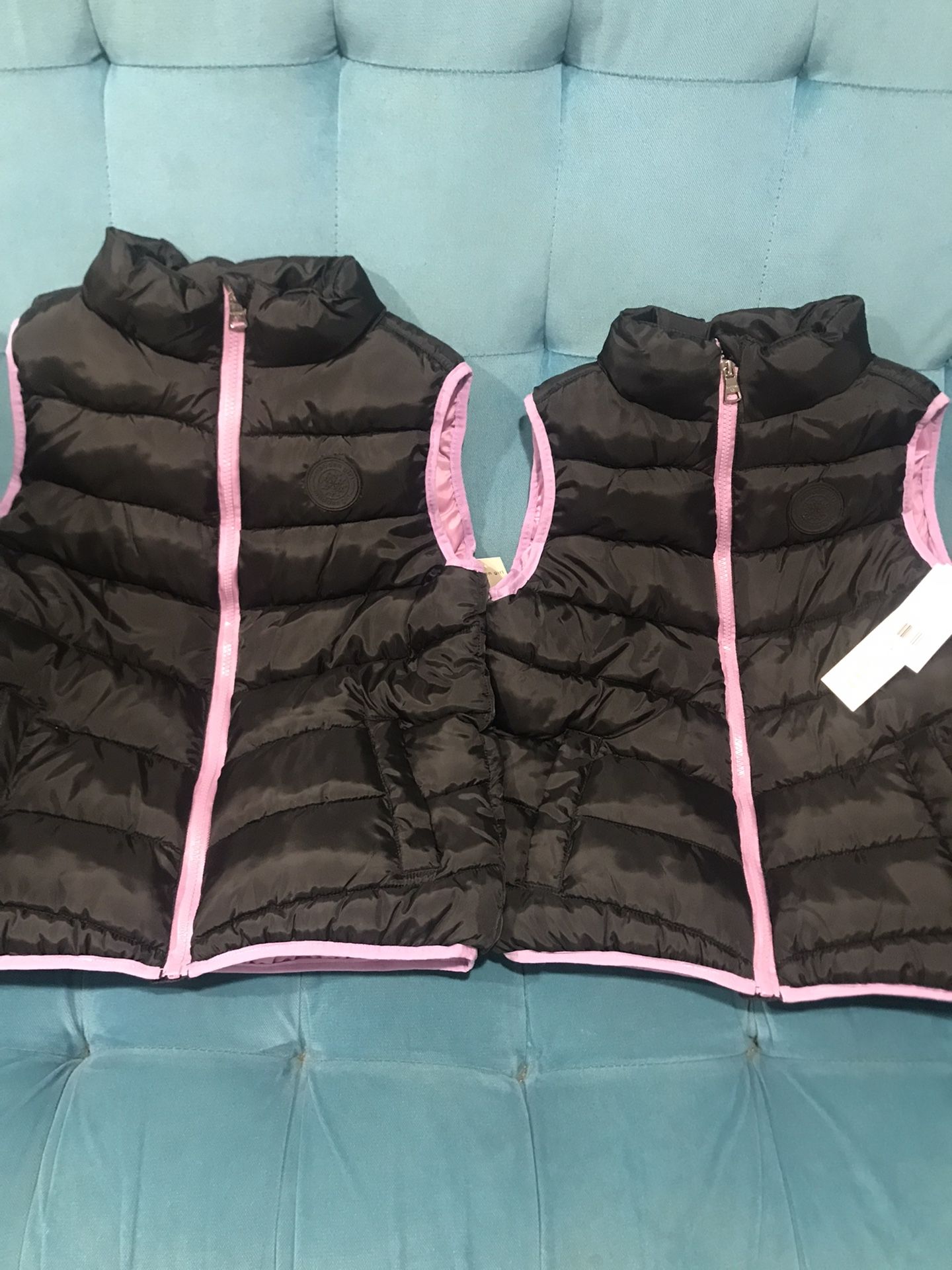2 new madden girls size 7/8 and 10/12 Full -zip 2 pocket puffer vest outerwear Black and pink brand new with tags