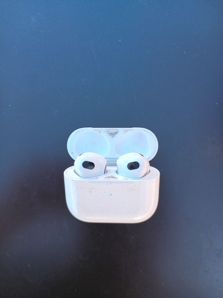 Selling a pair of Apple AirPods 1st Generation with original charging case. Fully functional Both earbuds connect and play sound Battery holds a charge Original Apple charging case included Cosmetic wear from normal use (scratches/scuffs — see photos)