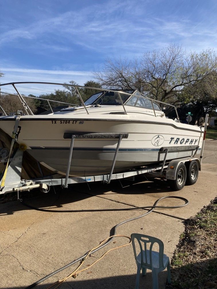 A cuddy cabin Bayliner Trophy, 20 feet, pushed by a 120 hp Force Mercury motor with good compression in all cylinders (135, 133, 135, 134 psi). New starter, 2 new batteries and preventive maintenance performed by Munson Marine. Boat is ready for the water. A video on boat running was taken on 1/8/2026. It will be provided upon request. Will also provide a new Hankai 18 hp motor(still in the box) as a kicker. Boat is ready for a test drive anytime.