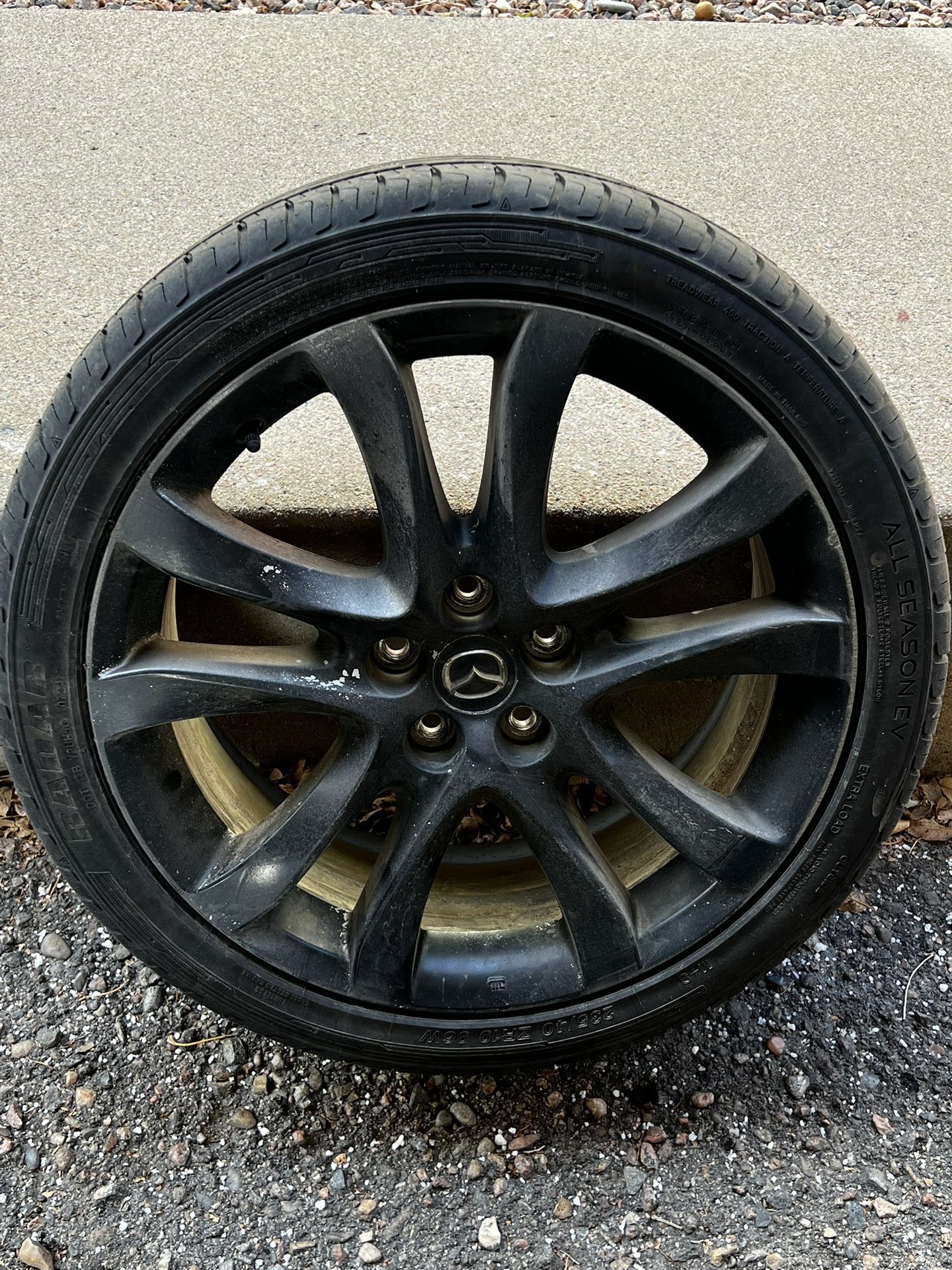 Used OEM Mazda 6 19” wheels, set of 3 *Comes with the tire* 2 Of the tires are in good condition, 1 tire needs replaced