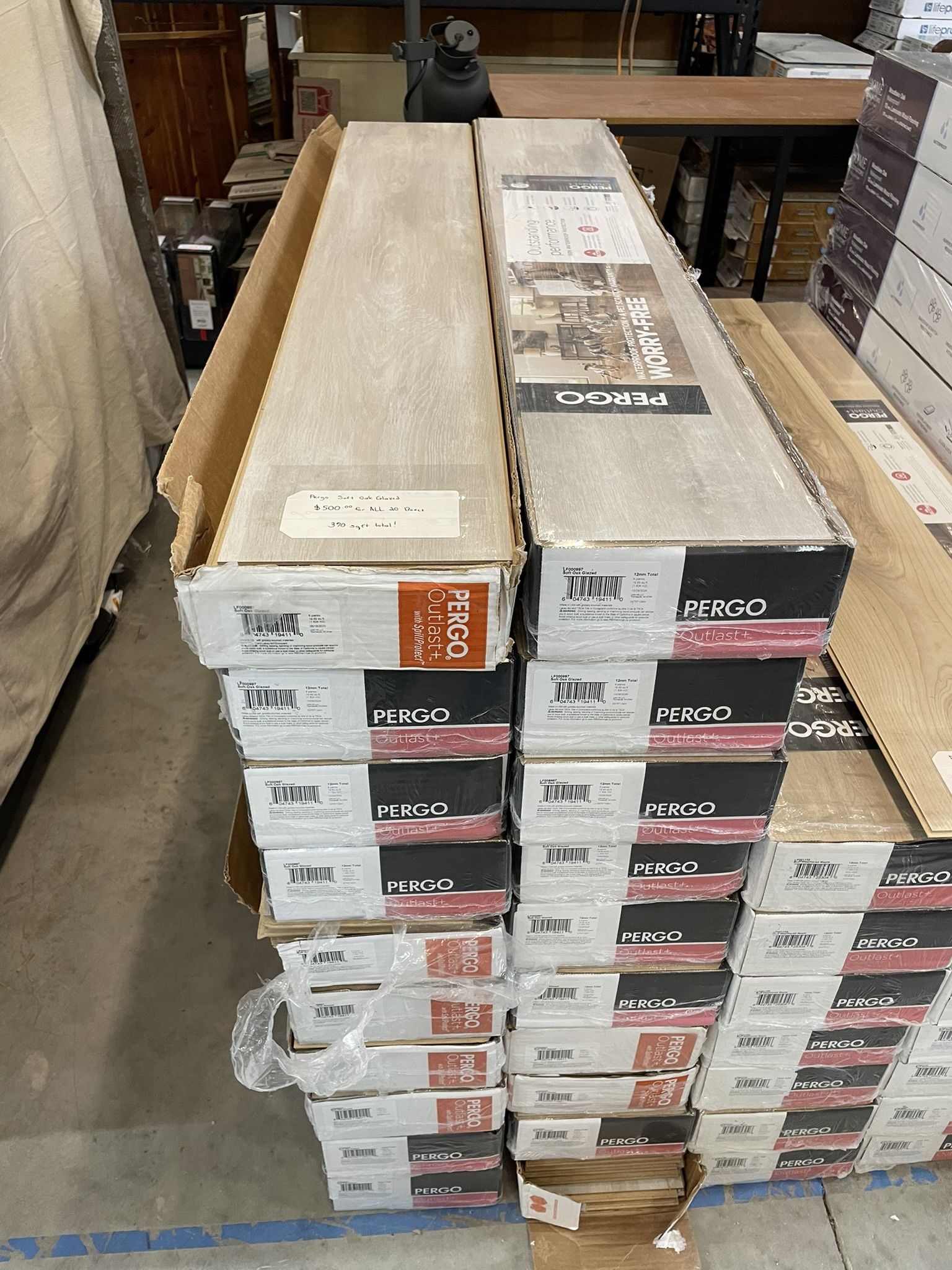 Hi ya’ll this listing is located at 4885 gum branch rd, Jacksonville, nc at the “Flipping Rooster Antique Emporium”! We’re open from 10 am till 6 pm Monday through Friday! We do charge sales tax on top of the price listed! Name of Flooring: Pergo Outlast Soft Glazed Oak Laminate Flooring Sqft In Stock: 390 Square Feet Price per case: $25 per box, for a total of $500! Waterproof! Also has underlayment pre-attached! ^ All cases must be bought together, we do have smaller quantities of other colors if you don’t need as much! We do this unfortunately to ensure we don’t have cases left over!