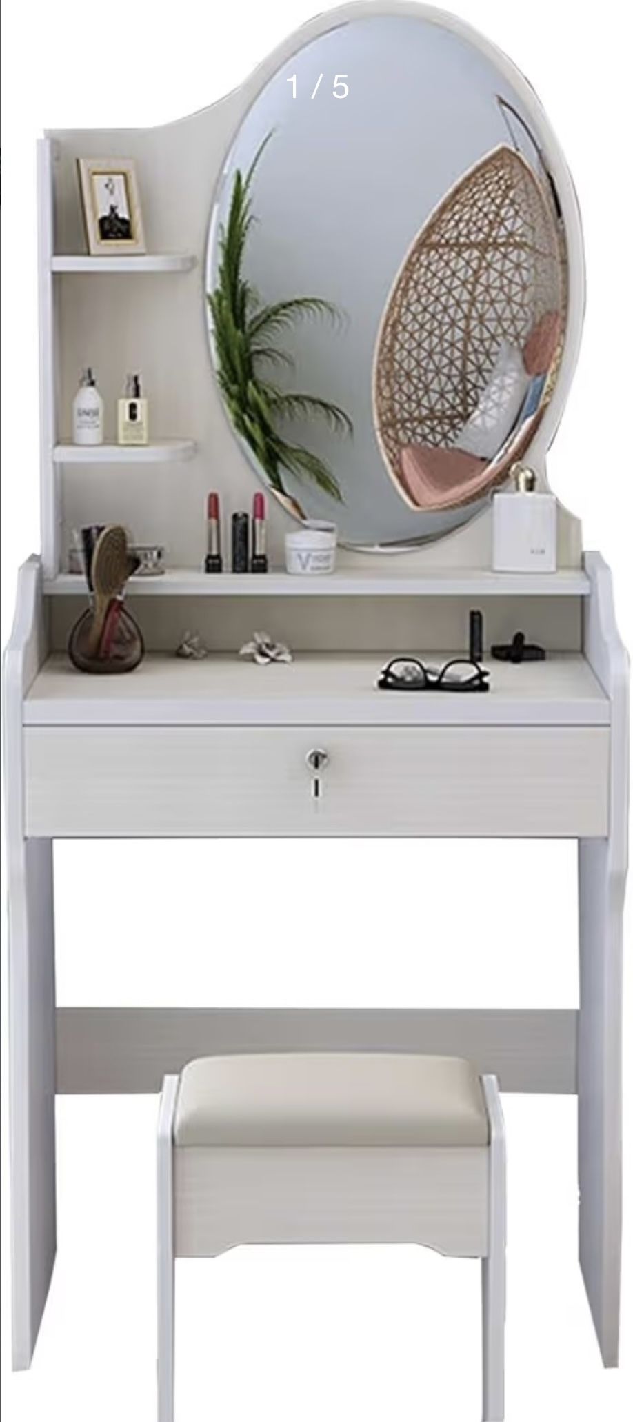 Dressing Table,Vanity Set with Mirror and Stool Girls Makeup Desk Large Storage Space Compartments and Drawers Bedroom Niture,white