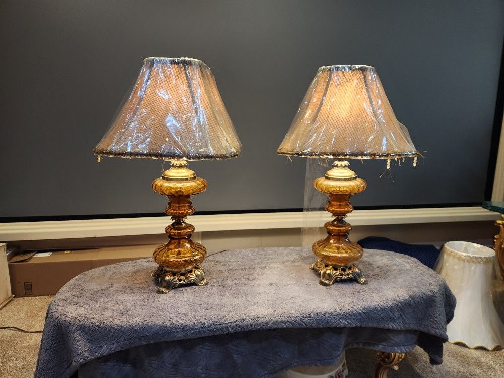 Vintage Amber Lamps with Ornate Base