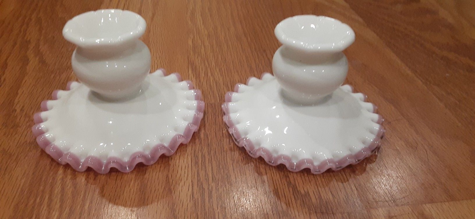 Set of fenton apple blossom crest candle holders. Good used condition. No chips or cracks. Porch pick up in Brook Park