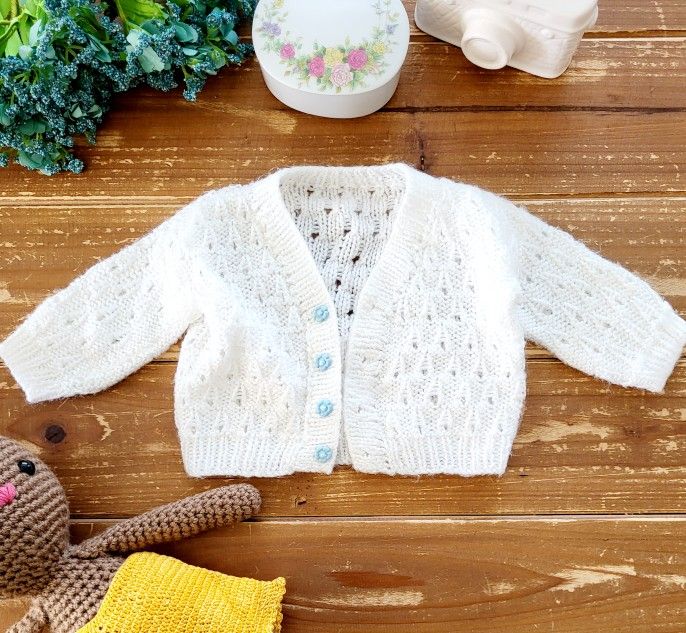 0-3MOS INFANT HANDMADE CROCHET WHITE CARDIGAN