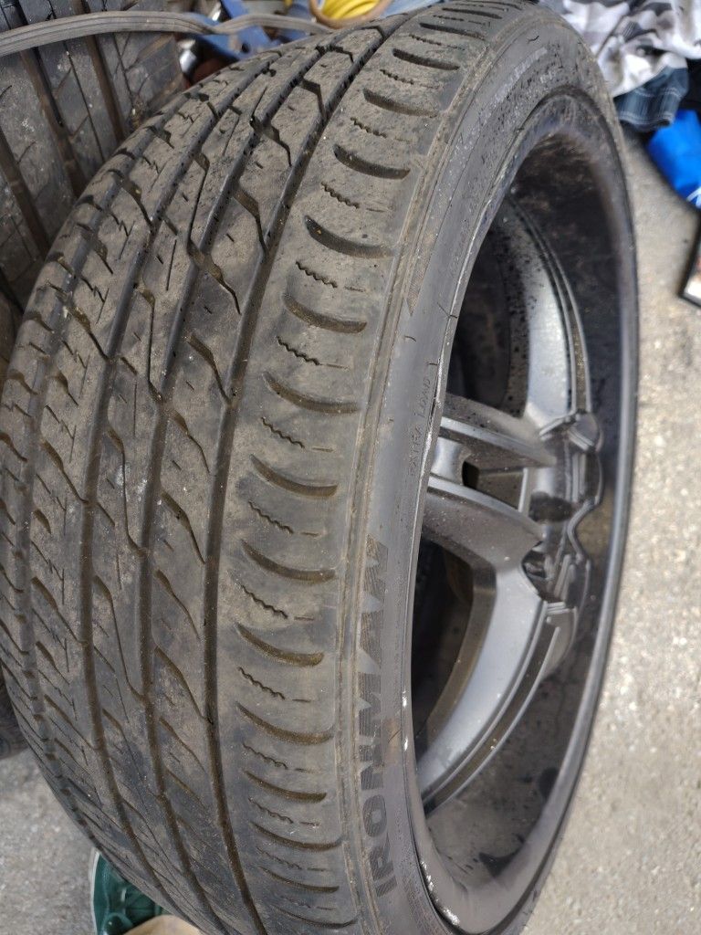 Five lug 20-in rims with Michelin tires barely new ready to go $350