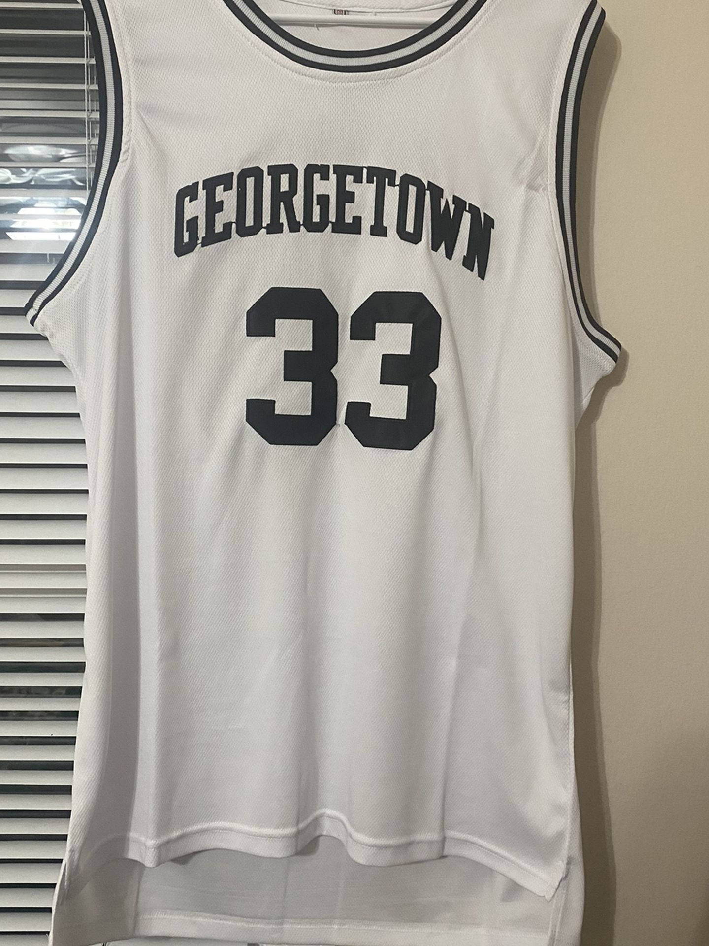 Selling the Georgetown Patrick Ewing jersey size medium brand new. (White and black) Allen Iverson bethel high school jersey brand new with tags (has a very tiny semi hole on the outter layer of the mesh between letters E & L (pictured in the last pic) does not go through so barely noticeable Each jersey retails at $100 Asking $100 for both Or individual -$65 Ewing $50 Iverson