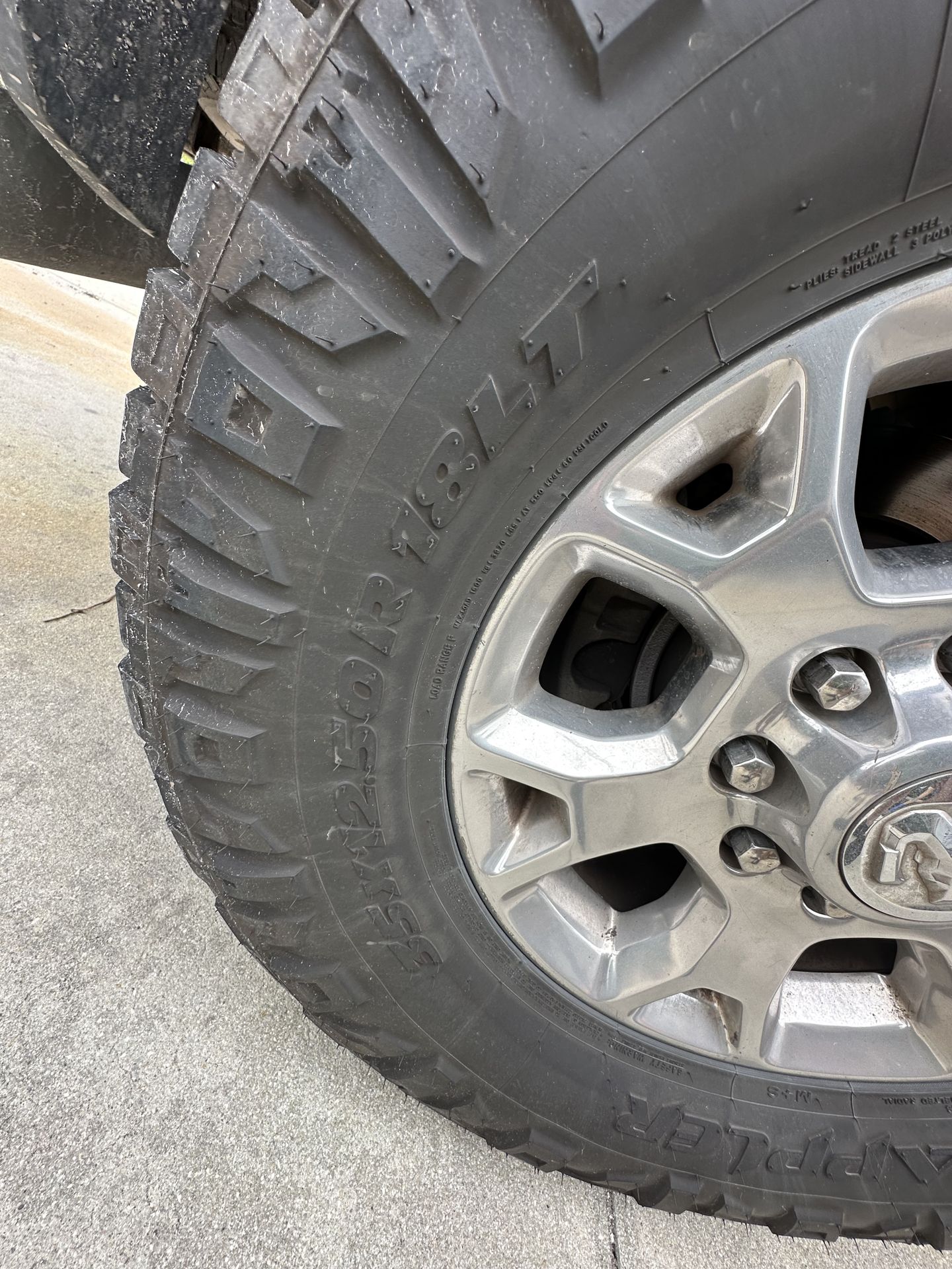 Great tires 80 percent tread only 5k miles on them . Traded the truck in and put stock tires back on Asking 900 OBO