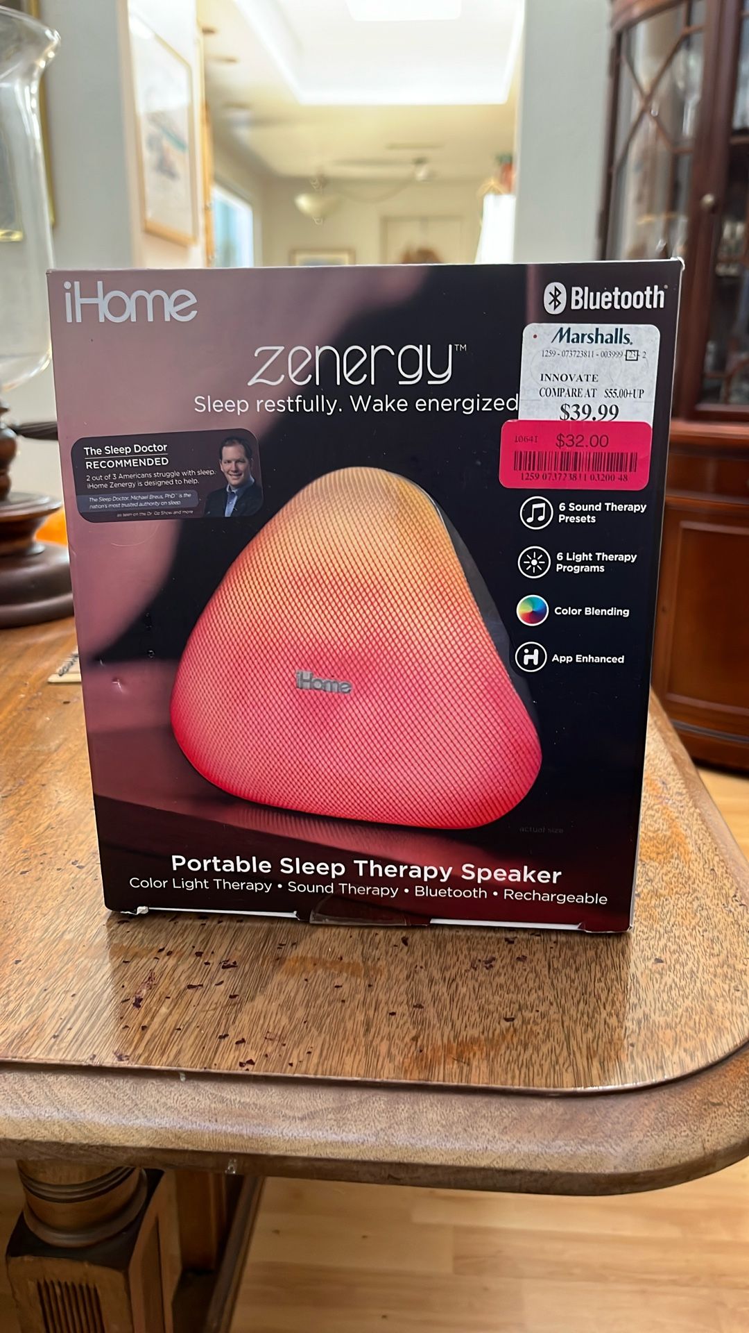 IHOME: Bluetooth: zenergy Sleep restfully. Wake energized. Portable Sleep Therapy Speaker: Color Light Therapy: Sound Therapy: Bluetooth: Speaker: Rechargeable: 6 Light Therapy Programs: 6 Sound Therapy Presets: Color Blending: App Enhanced: Zenergy mobile app for IOS and Android provides wireless control of light and sound settings. The Sleep Doctor Recommend. 2 out of 3 Americans struggle with sleep. Item is negotiable. I Can Meet You somewhere!