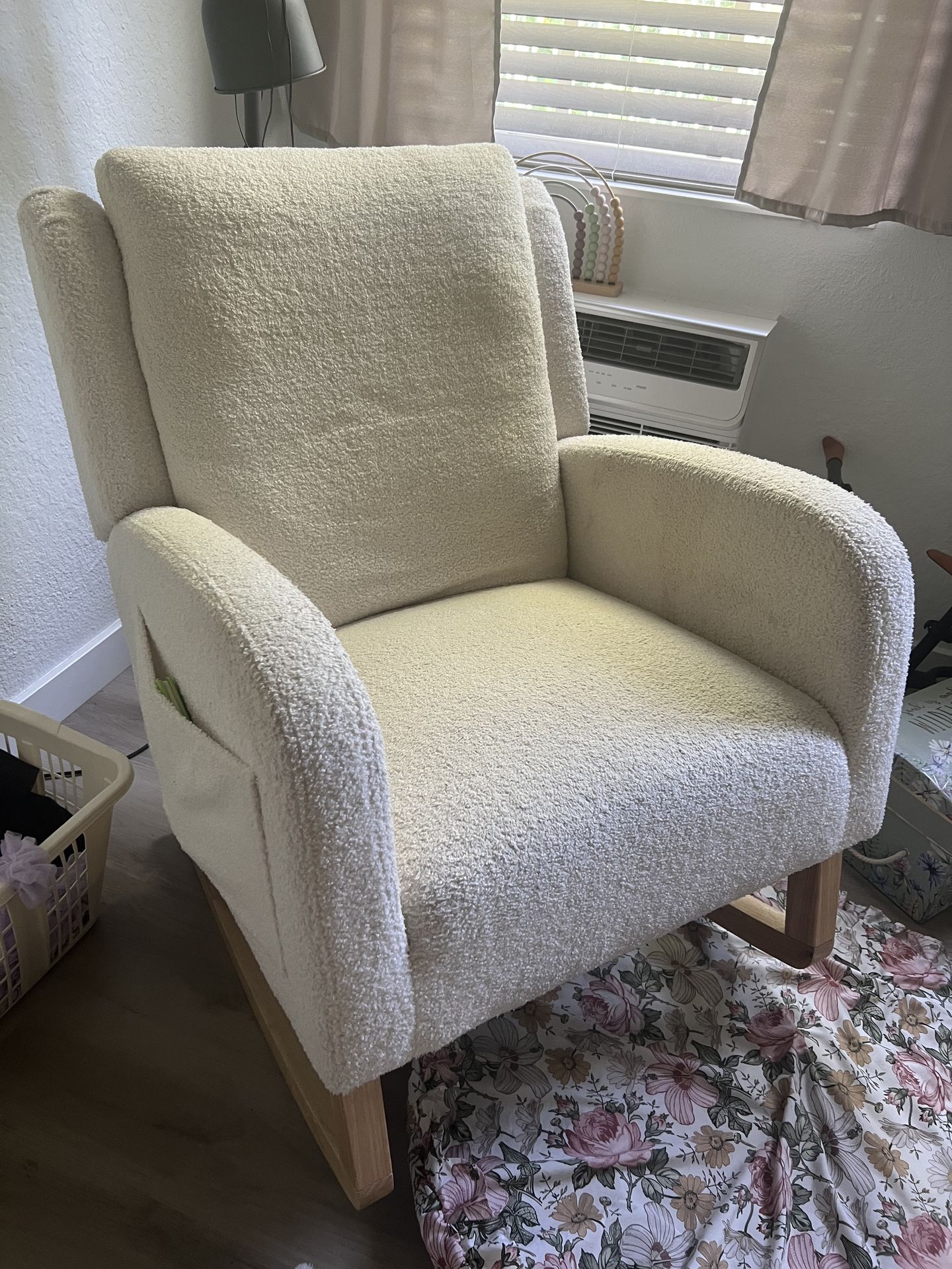 Off white rocking chair good condition ready for a new home. Gently used. Small stain on side of arm where my daughter got paint.