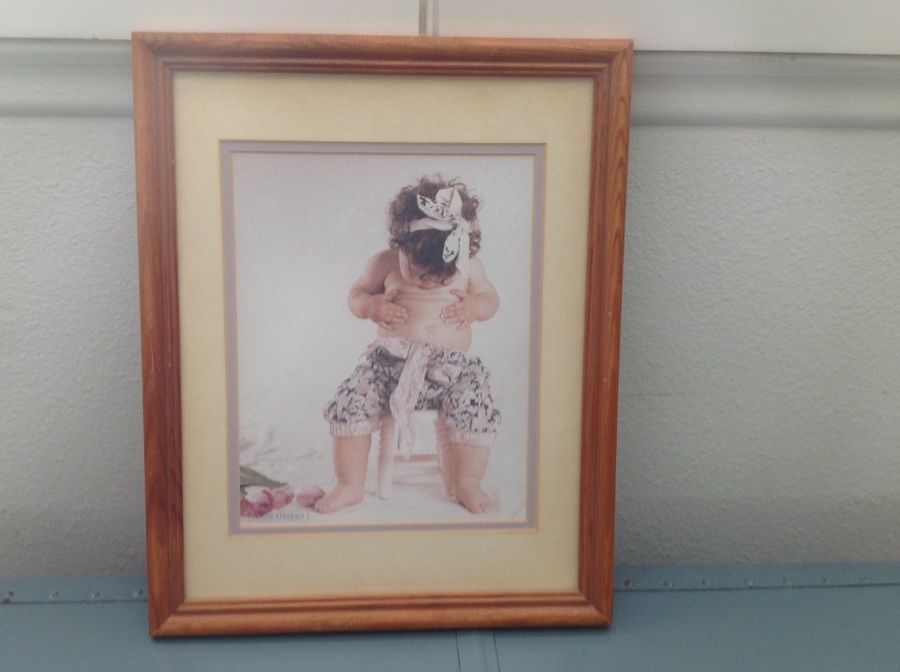 "Toddler Girl Looking At Her Belly Button" By Anne Geddes 8 x 10 matted and framed Excellent condition