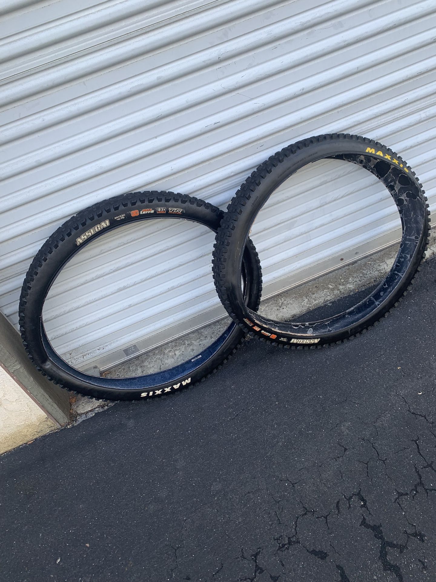 Hello and thank you for checking out another one of my listings from Zombie Bicycles where I specialize in refurbished tuned bikes and new custom bikes below retail and tech service. Pair of used Maxxis Assegai tires 29x2.6” 3C maxxTerra. Both tires have about 50% tread left. One has exo+ casing; that would be best to use as the rear tire. They retail for about $100 a piece. —> $40 firm <— for the pair. The margin is slim and I won’t sell below cost. The sales tax I’m obligated to collect is coming out of my margin. Please don’t come at me with an offer. Please check out all of my cycling items and please inquire about tuneups and services. Guaranteed to beat local shop rates.