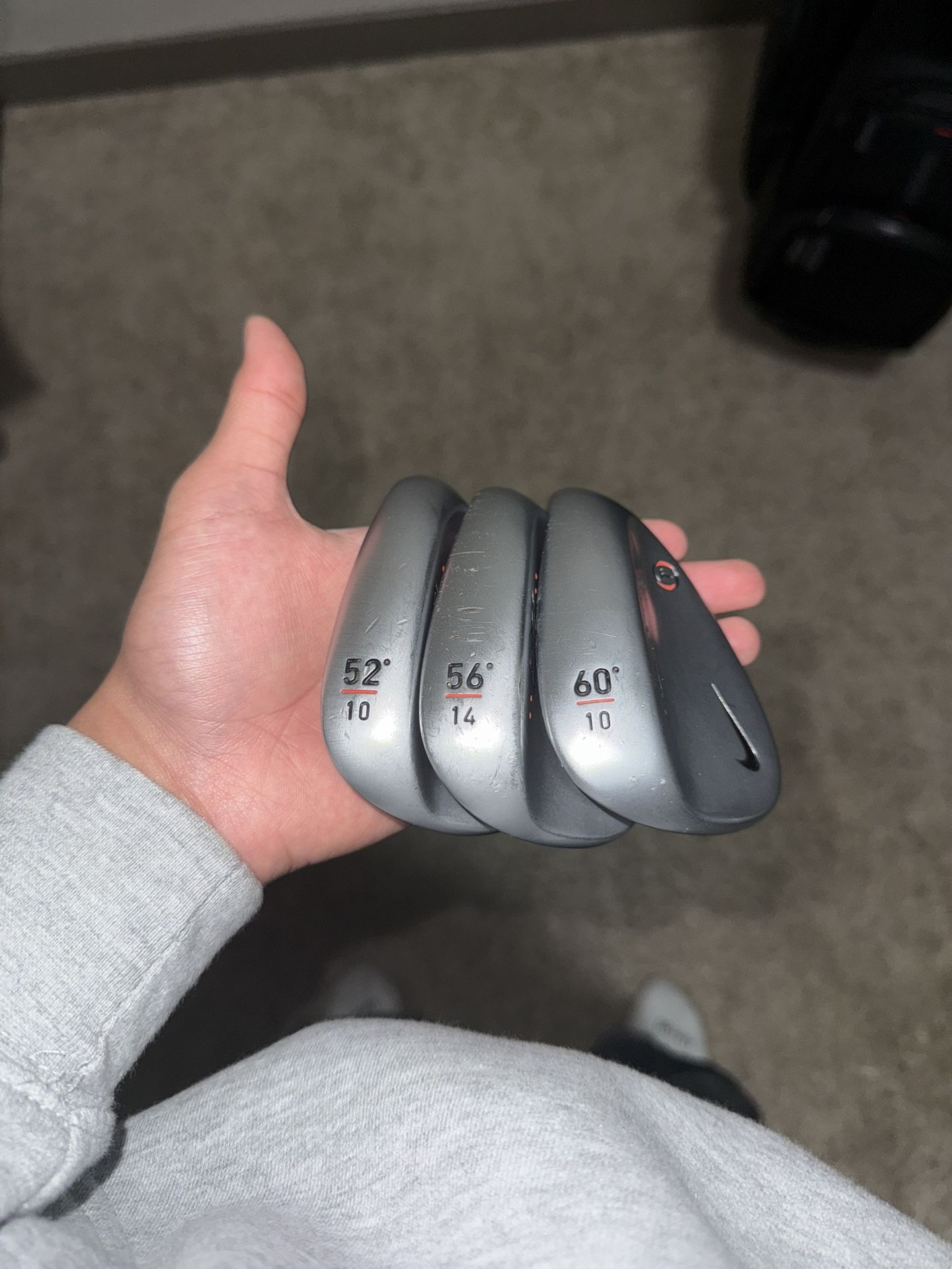 Nike sv tour chrome wedges 52, 56, 60 degree set Looking to sell as a set or trade All clubs are in good condition with original Nike grips and true temper dynamic gold sv shafts Looking to get $165 obo or trade preferably Meet in Pleasanton Check out my other listings for more golf clubs that I am selling/trading