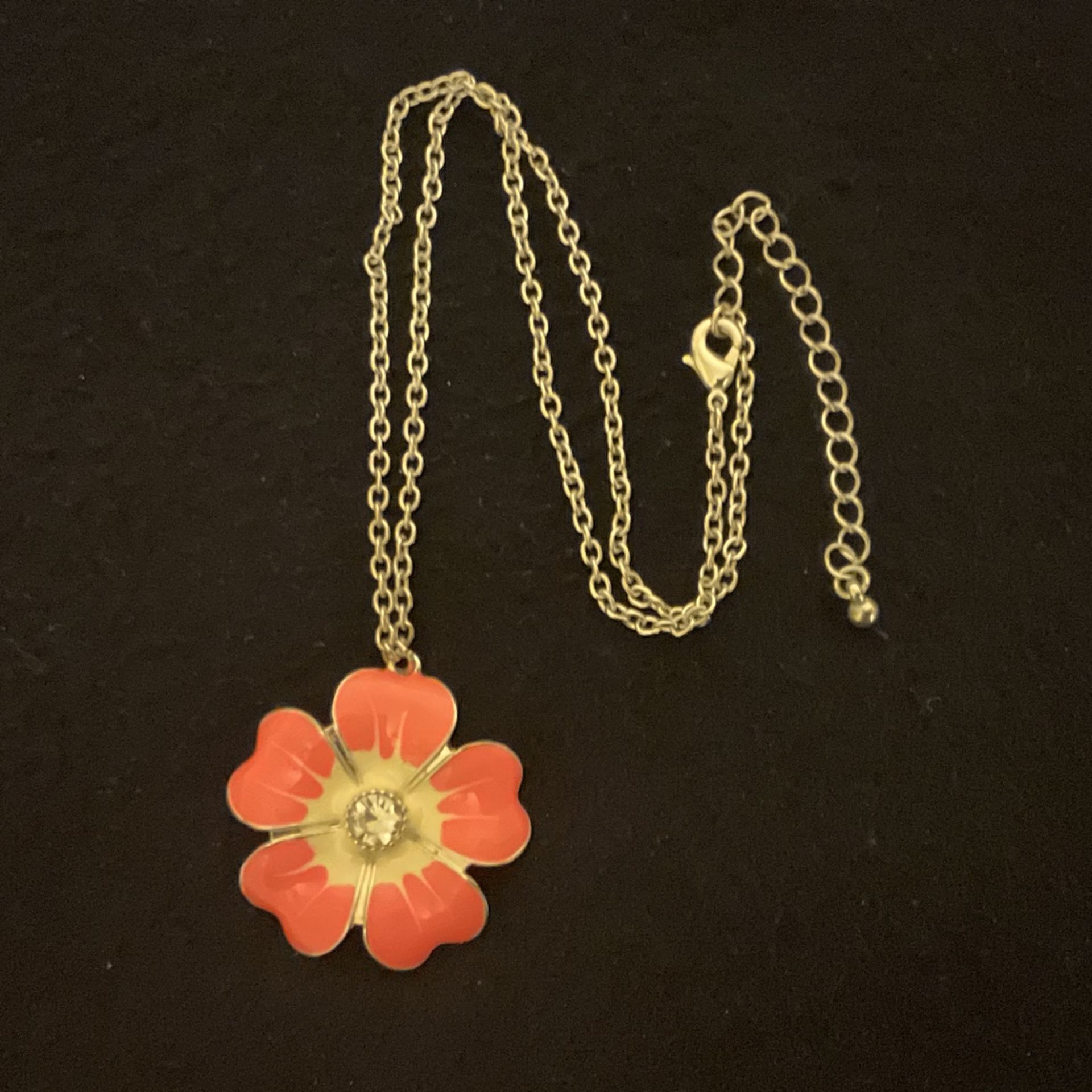 20” SilverTone Necklace And Pink Flower Pendant With Clear Rhinestone