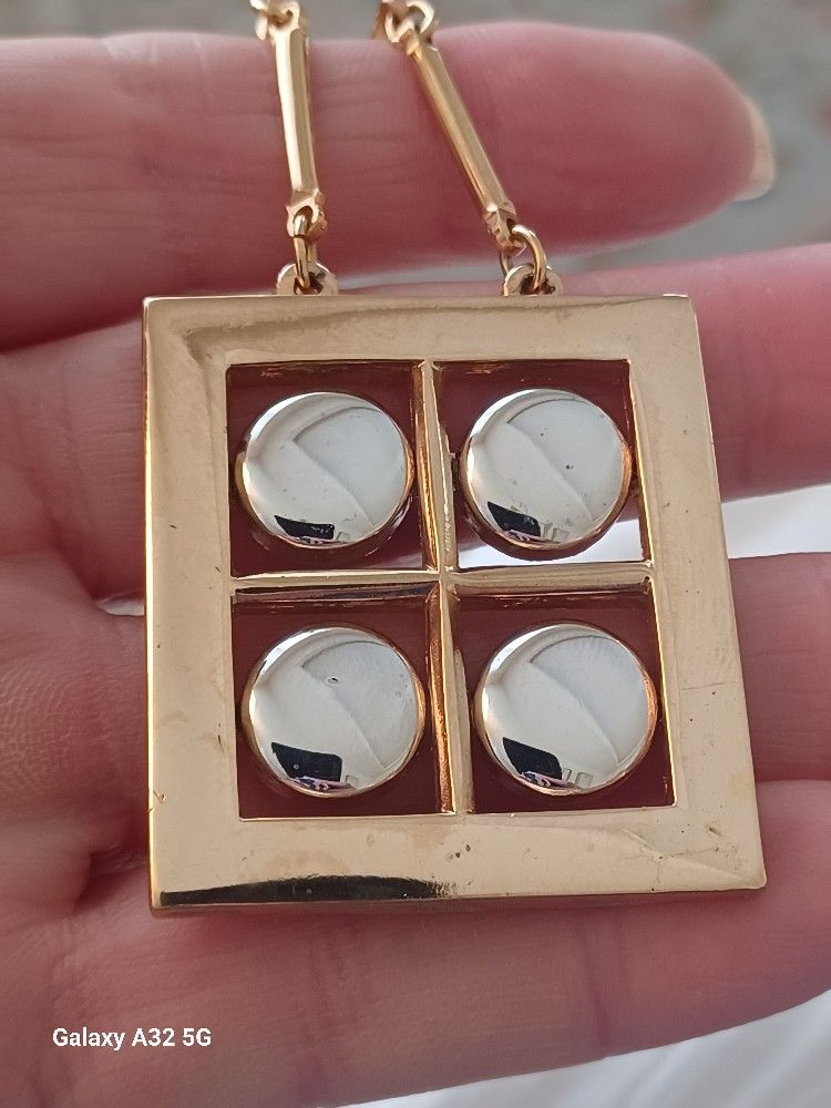 Vtg.Designer "ARTISTRY " Geometric Gold & Silver Tone Necklace- 20 In.