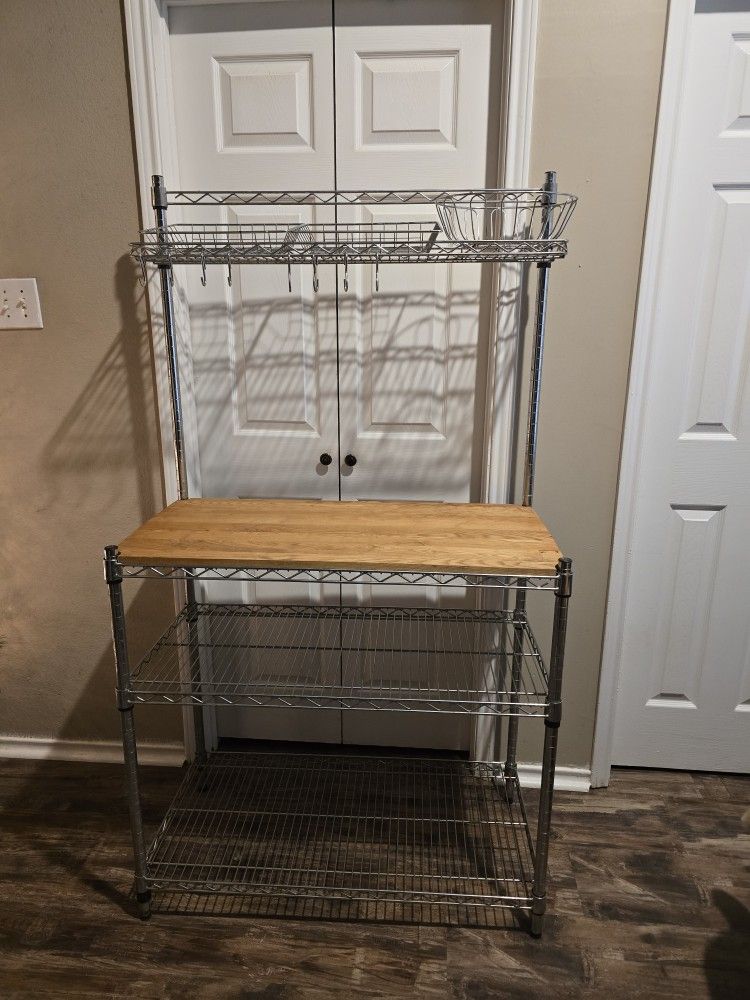 Rowlett pu $130 Very nice bakers rack, excellent like new condition Measures 63 3/4" tall, 35 1/2" wide and 18" deep