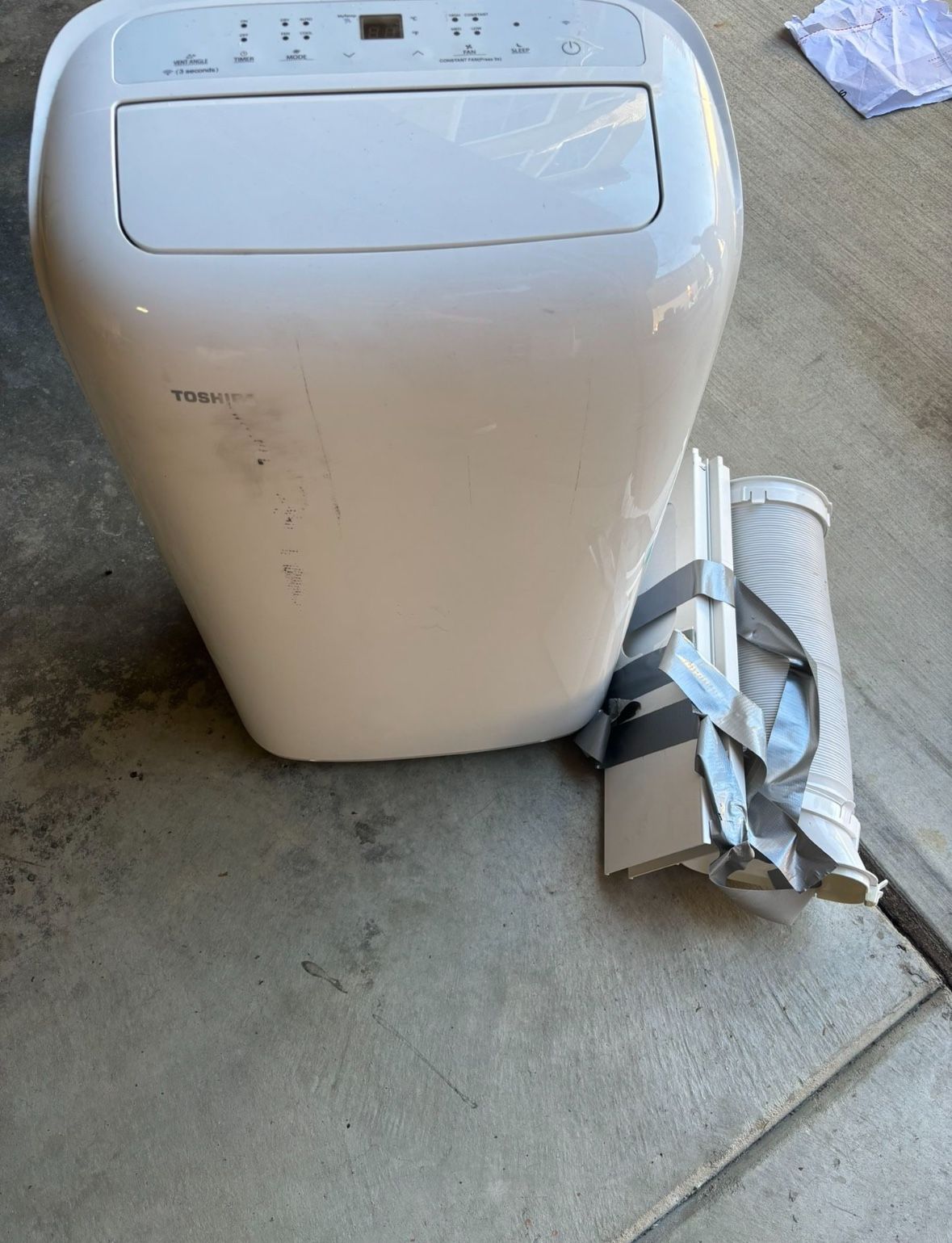 toshiba ac unit hooks up to your window to work. used condition has a couple scratches but works perfectly fine