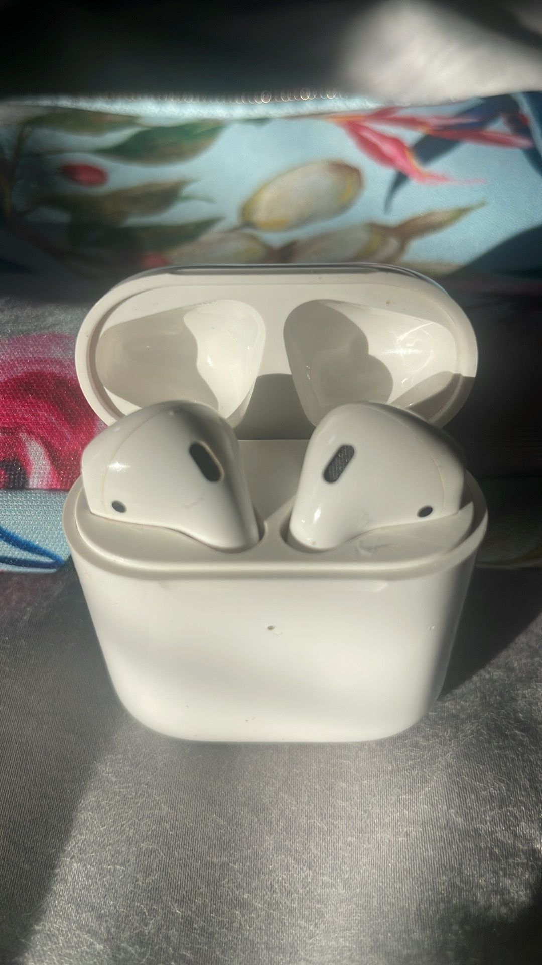 2nd generation Apple AirPods w/ Charging Case. Both earbuds as well as case still hold good charge and in good condition. Minor scratches. No major damage or dents. No longer have any use for them. Pink Silicone case in photo included.