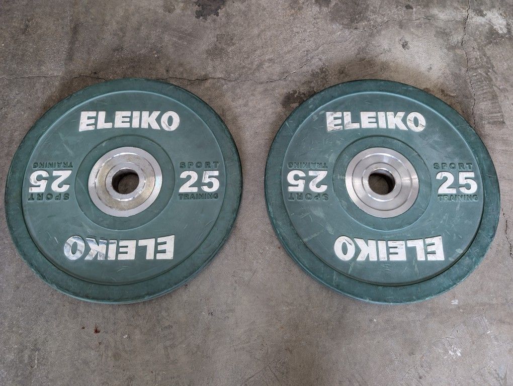 Pair of Eleiko Sport Training Plates 25 lbs each. Excellent Eleiko quality plates. Bumper Plates Weight Plates Olympic Plates Rubber Plates Gym Plates Floor Protection Noise Reduction Barbell Safety Drop-Safe Plates Durable Weight Plates Home Gym Equipment CrossFit Gear Powerlifting Plates Olympic Weightlifting Commercial Gym Supplies Virgin Rubber High-Density Bumper Plates Competition Bumper Plates Training Plates Plate Sets