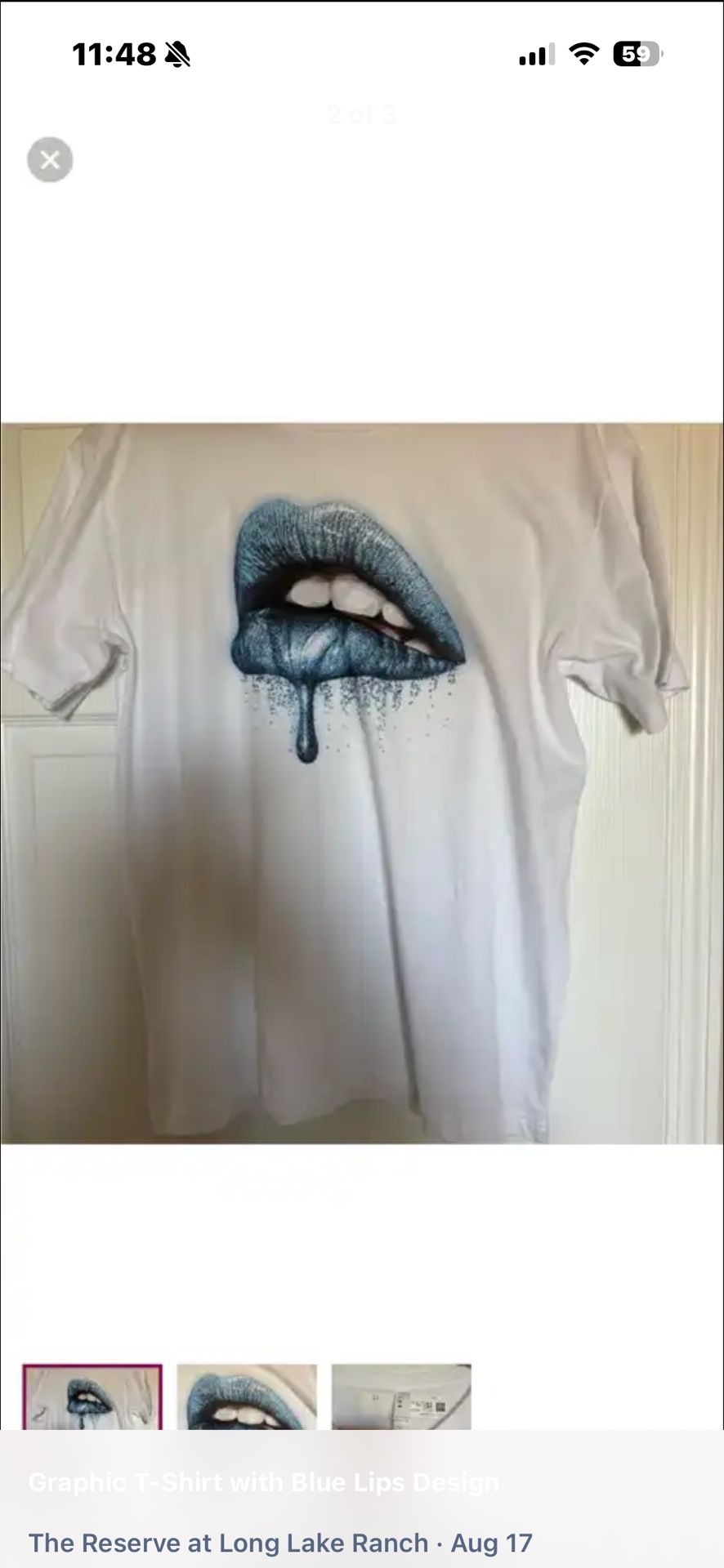 Unique graphic men’s tee featuring blue lips Brand new never worn size large