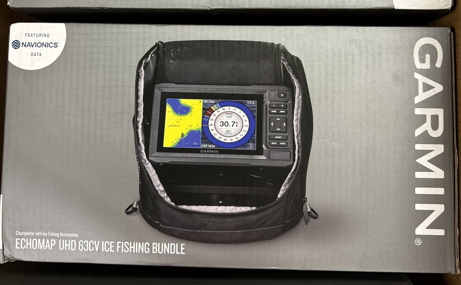 Brand new in box, still factory sealed Garmin Echo Map UHD 63cv Ice Bundle Portable Fishfinder Storage bag/box included $400 OBO