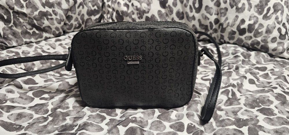 Chic and compact, this GUESS crossbody bag is perfect for everyday style. The sleek black monogram design is both versatile and fashionable—easy to pair with any outfit! ✨ Details: Brand: GUESS Color: Black with tonal "G" monogram print Material: Faux leather exterior Lining: Beige interior with "G" monogram print Closure: Top zip Strap: Adjustable crossbody strap Interior: One slip pocket and card slots for small essentials Approx. size: 7.5" (W) x 6.5" (H) x 2.5" (D) Lightweight and easy to carry Perfect for errands, casual outings, or travel