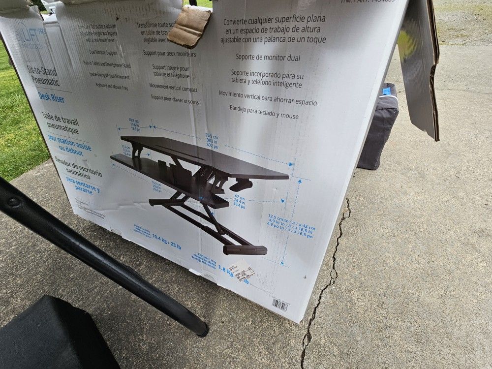 Brand new out of box. I ended up purchasing a desk that raises and lowers so I never needed this.
