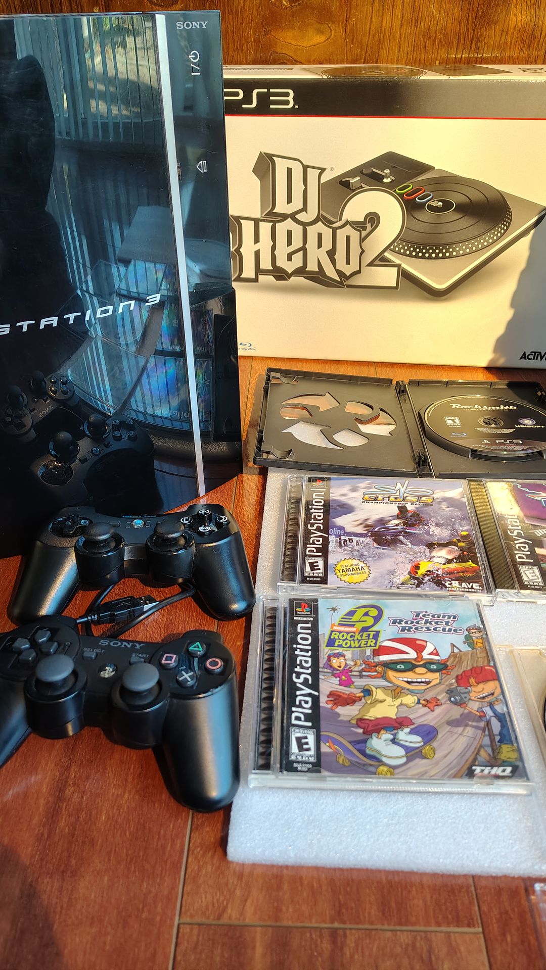 This is a complete PlayStation 3 fan that plays both PS1 and PS3 games every single game that comes in this collection has been tested on the system and works It will come with two controllers one aftermarket and one OEM dual shock The DJ hero 2 is complete with game and dongle and works This is a huge bundle I'm selling all this together for one price no one offs I'm not selling anything separate. Take all for one big 🤝