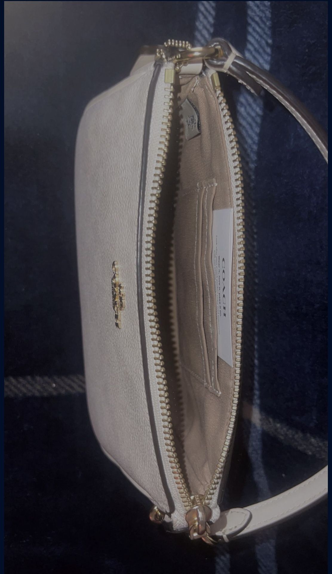 Bolsa Coach original, tamaño pequeño y color blanco, en excelente estado. Incluye certificado de autenticidad. Fabricada con materiales de alta calidad y acabados elegantes. Ideal para uso diario o ocasiones especiales. Un accesorio clásico, práctico y sofisticado. Authentic Coach handbag, small size and white color, in excellent condition. Includes certificate of authenticity. Made with high-quality materials and elegant finishes. Ideal for everyday use or special occasions. A classic, practical, and sophisticated accessory.