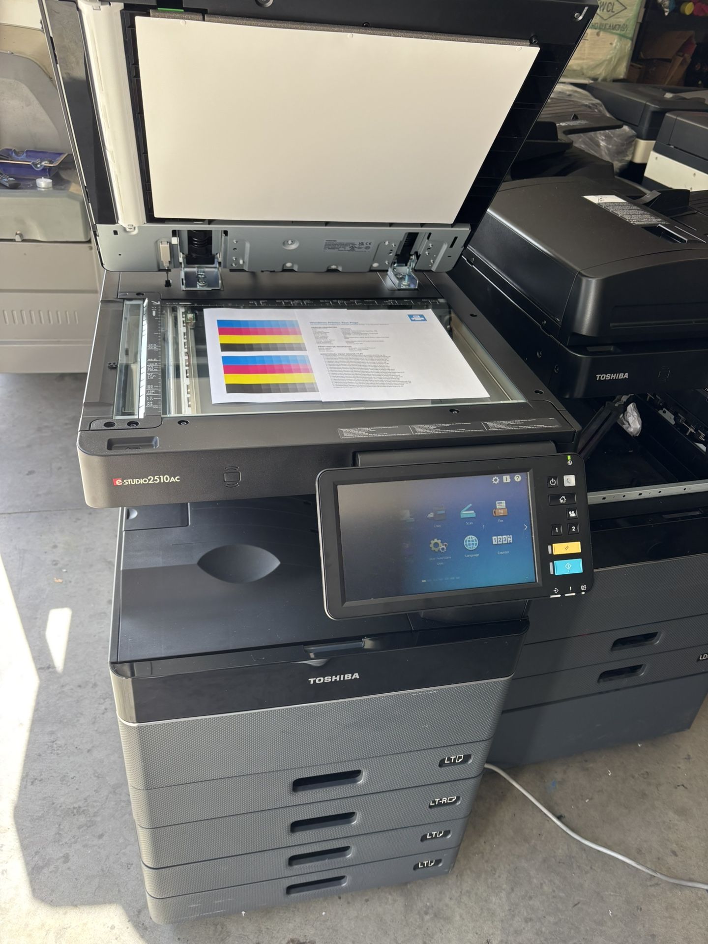 Toshiba e-studio 2510AC Toshiba e-studio 2510AC High-Resolution Color Multifunction Printer Copier ( MFP). This affordable solution is reliable and very efficient. Print speeds at 25 pages per minute and a scanning speed of 73 ppm. This model is packed with industry-leading technology and innovations designed to connect workgroups, integrate and simplify. MAIN FEATURES: Output Speed BW / Color: up to 25 / 25 ppm Scanning Speed: up to 73 spm Document Feeder Capacity: up to 100 Sheets Optional Single Pass Document Feeder Paper capacity: Standard 350/Max 2,900 Sheets Recommended for mid to large workgroups Wireless Functionality: Airprint & Mopria