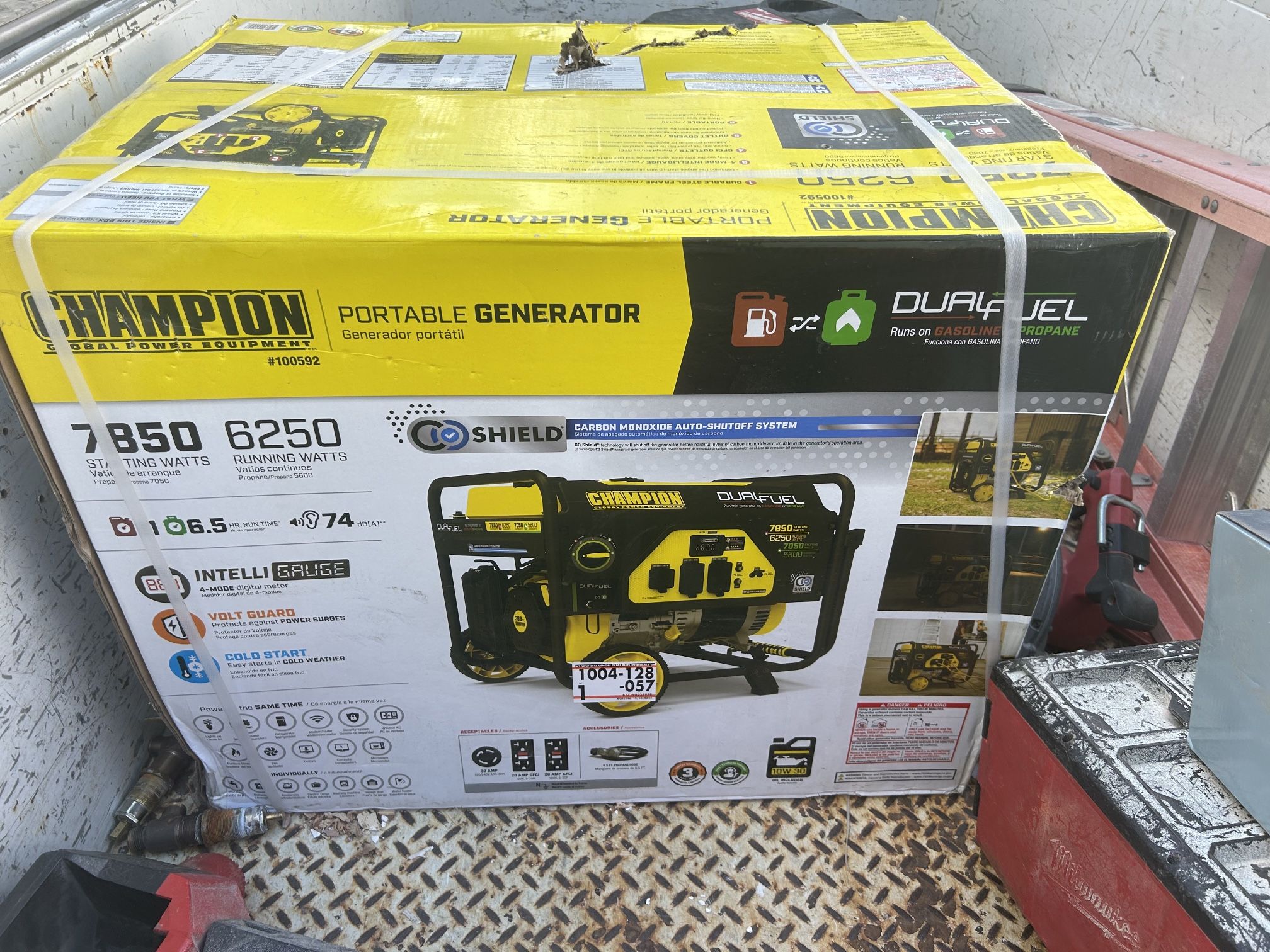 7850 STARTING WATTS 6250 RUNNING WATTS Propane or Gas 7050 Still in the unopened box, brand-new Most stores are currently sold out of generators.