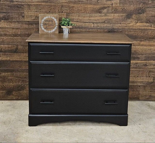 Dresser $250 Painted with Heirloom Traditions paint in Warm Ember black with new black hardware. Top is refinished. Features 3 dovetailed drawers that slide smoothly. 40 inches wide, 19 inches deep 35 inches high Check out the rest of my furniture and if you have something you would like to update by getting it painted, I would be happy to give you a quote!