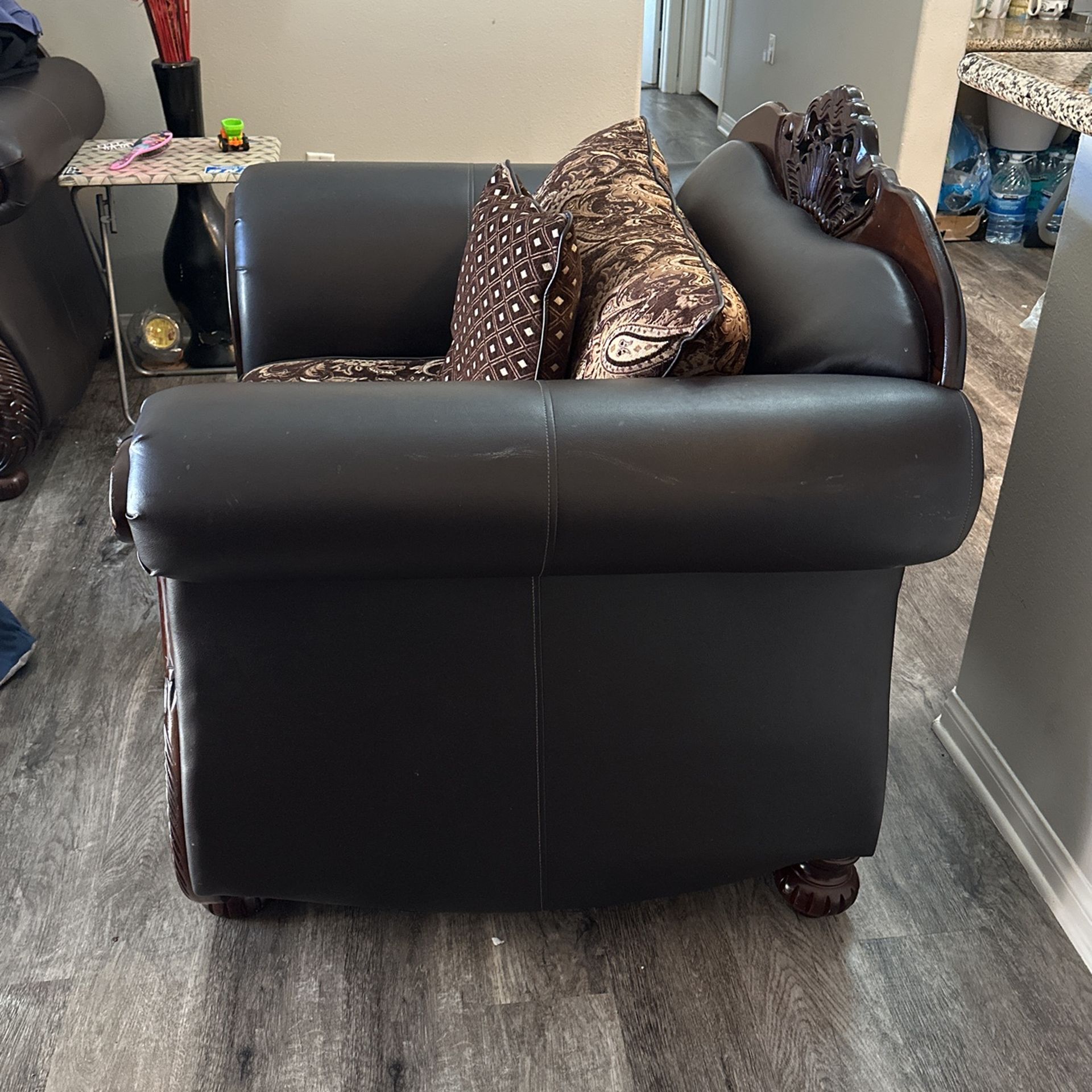 Single persona sofa chair in brow leather with fabric pattern. 300.00 obo.