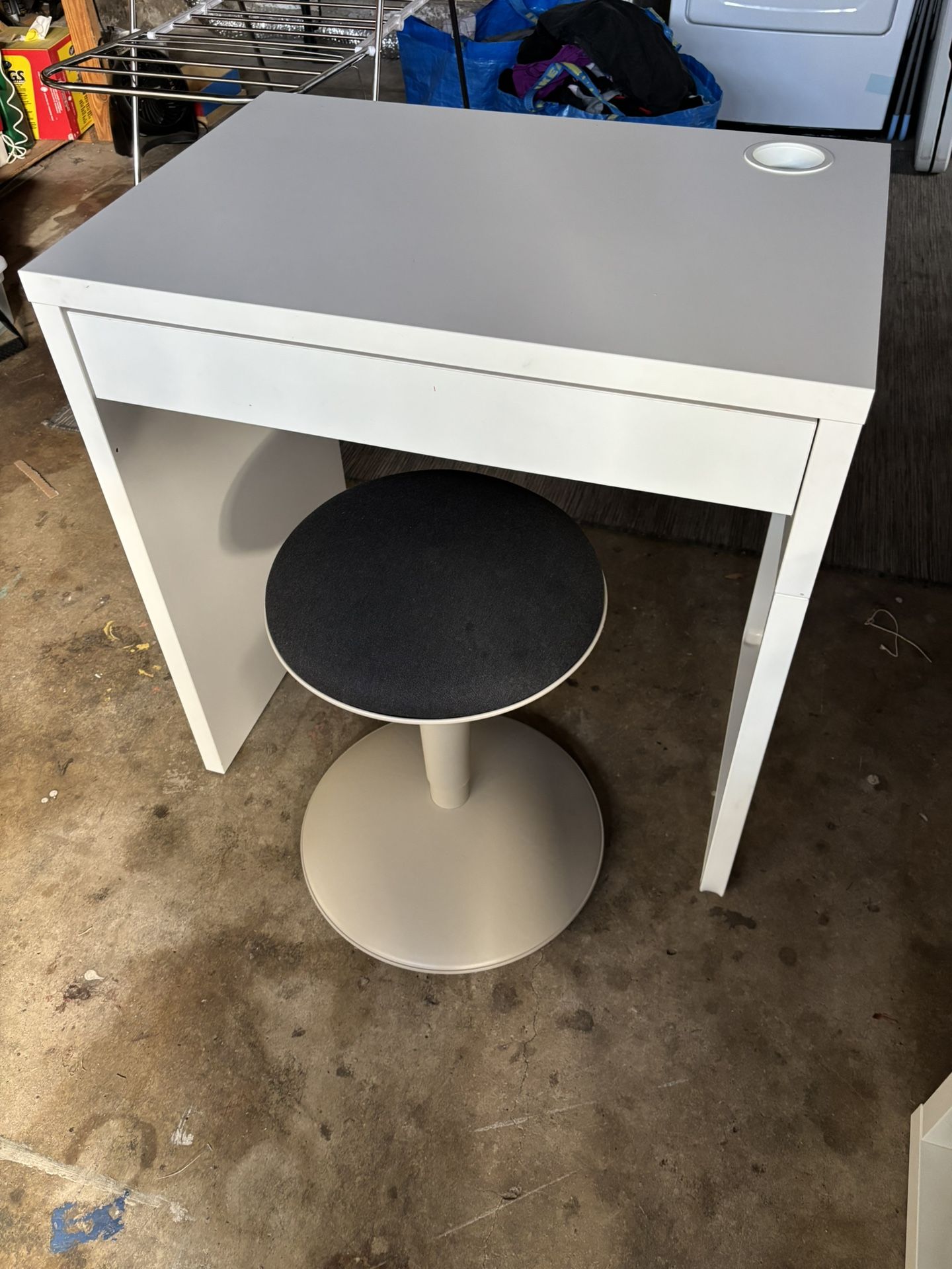 White IKEA MICKE desk and adjustable chair. Charcoal top to chair.