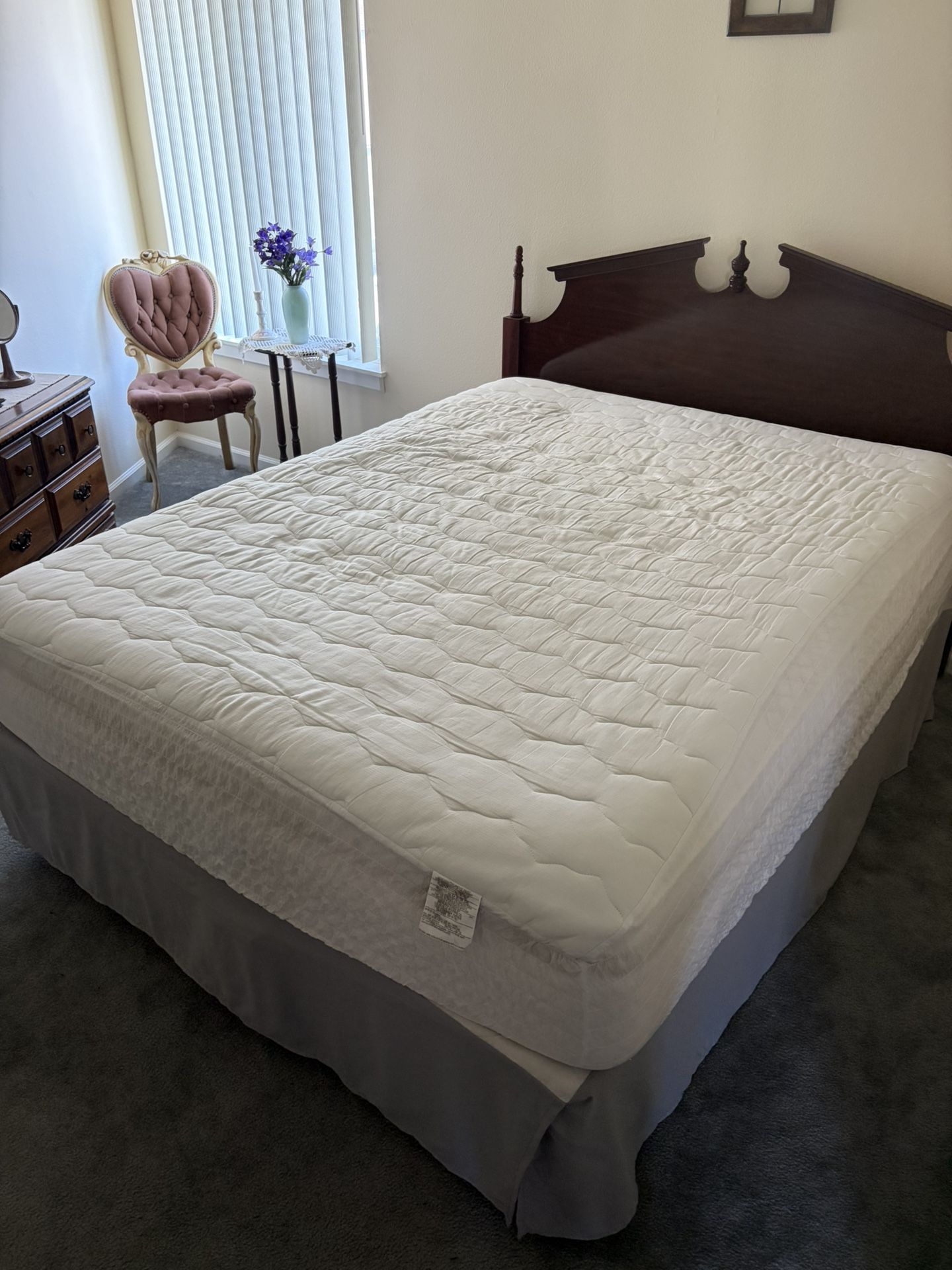 Queen‑size solid wood bed frame with traditional headboard. Includes clean mattress (no stains, no odors). Sturdy and ready for pickup. Buyer pickup in Cypress. Still available! Make an offer and it's yours! **PICK UP ONLY** Cypress, CA