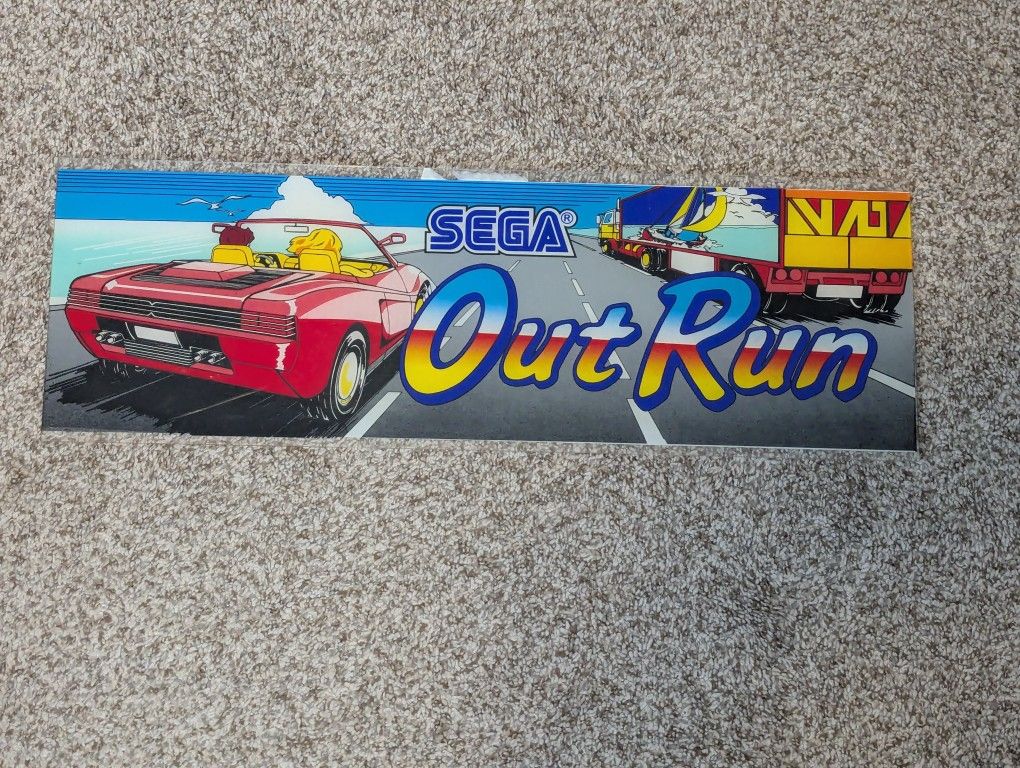 Original OUTRUN Sega Arcade Backlit Marquee from Arcade Machine Looks great on the wall next to your collection or in front of a light bulb as a backlit sign. I can meet most days in Oak Grove or Grain Valley.