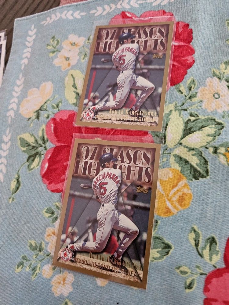 Norma Garciaparra Boston Red Sox Baseball Cards 2 '98 Topps '97 Season Highlights Rookie Record Hit Streak Cards in NM Condition 2 '99 Upper Deck Collectors Choice Preview Cards in NM Condition Cards will come in Penny Sleeves only
