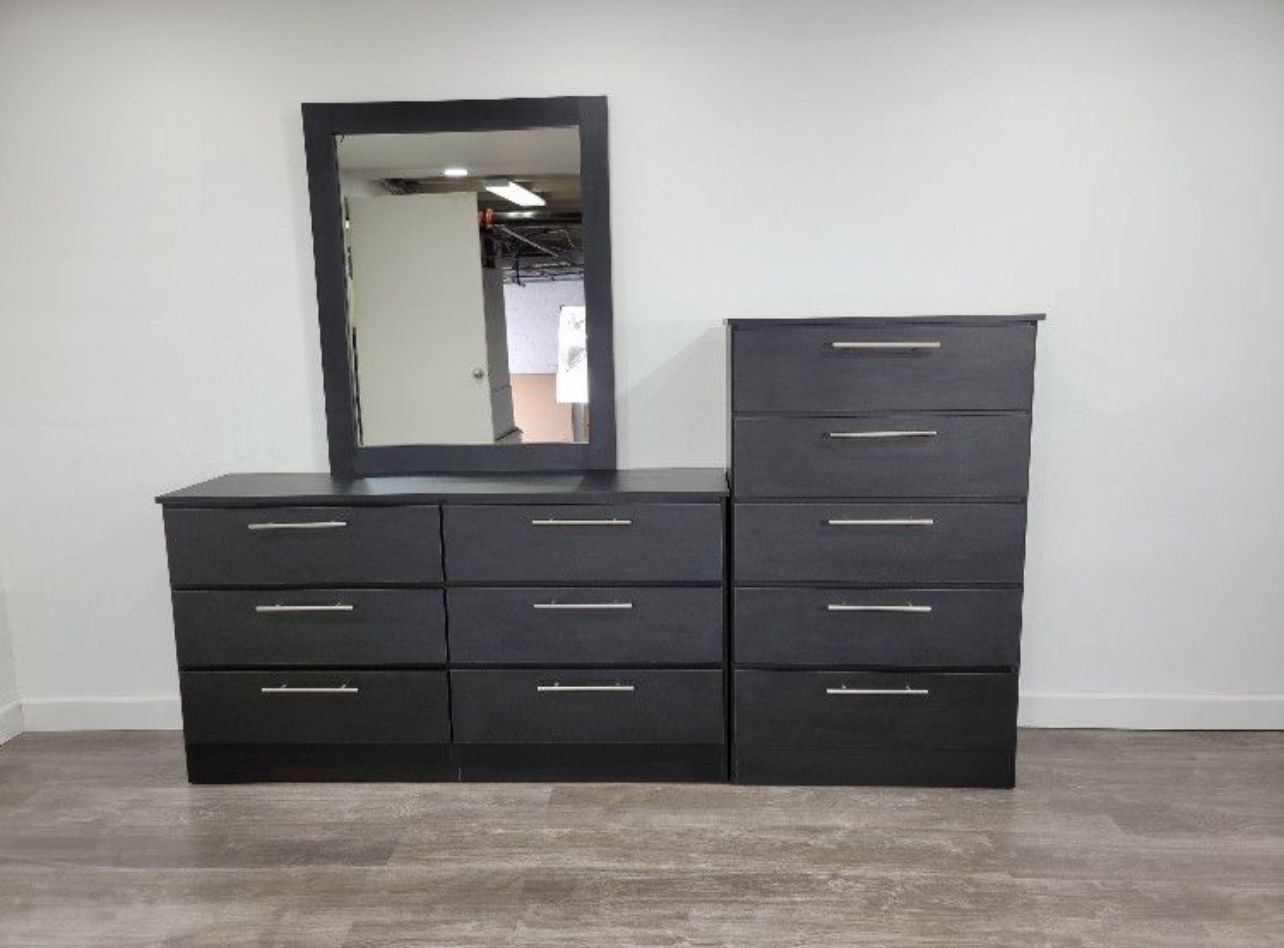 BLACK DRESSER WHIT MIRROR AND CHEST - CÓMODA CON ESPEJO Y GAVETERO COLOR NEGRO