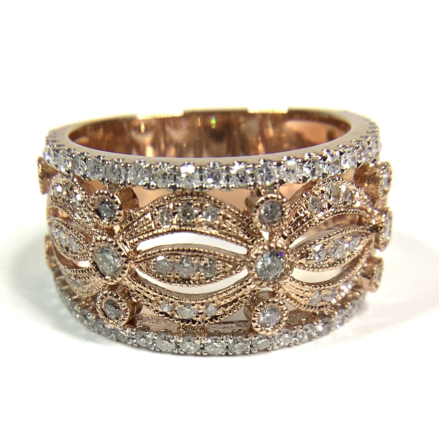 10K Rose Gold Diamond Milgrain Wide Ring Band