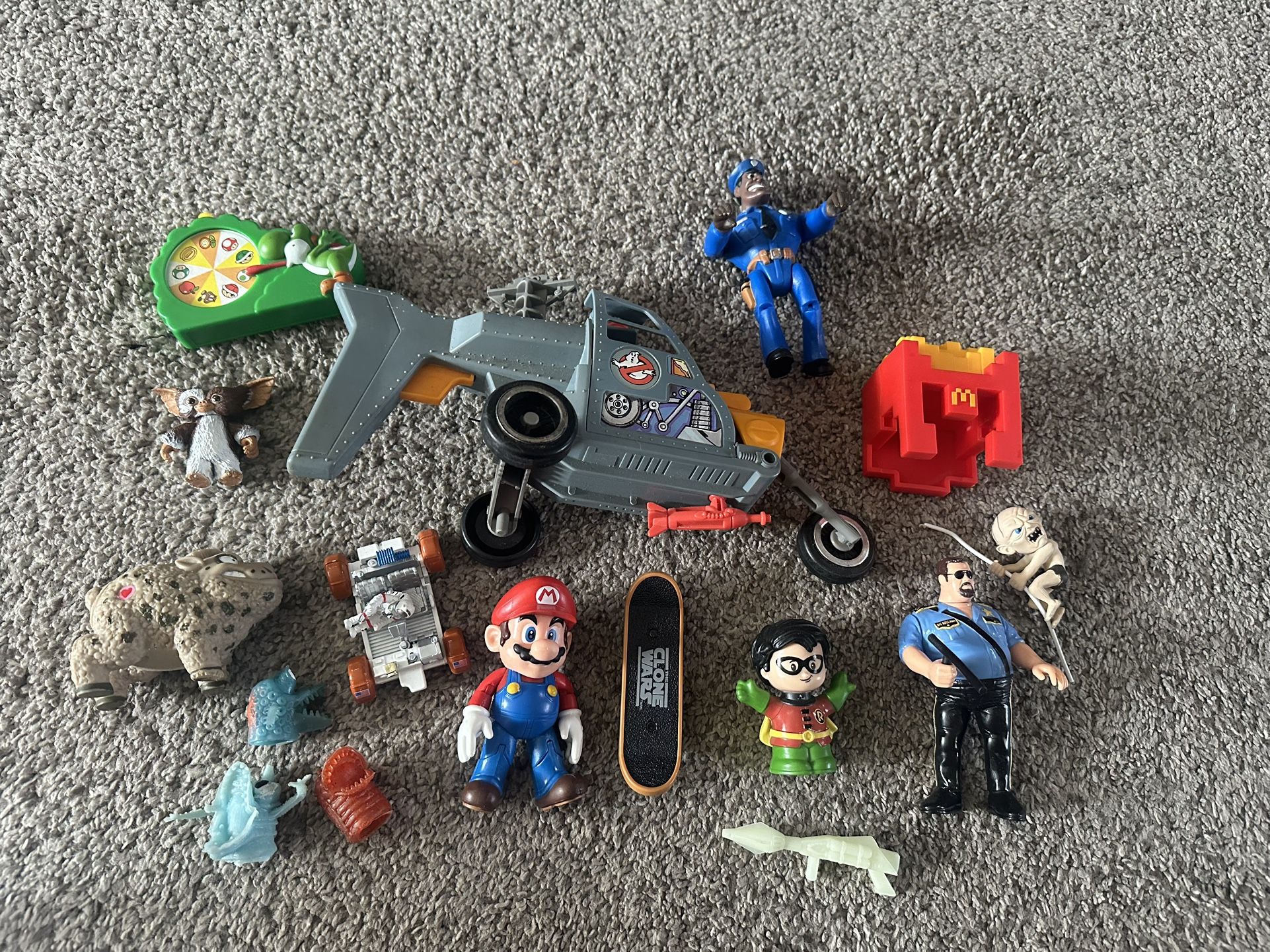Box of old toys. Some 80s stuff and some newer. Star Wars, ghostbusters, Nintendo, wrestling, happy meals, barnyard commando, etc. cash, Venmo, Zelle