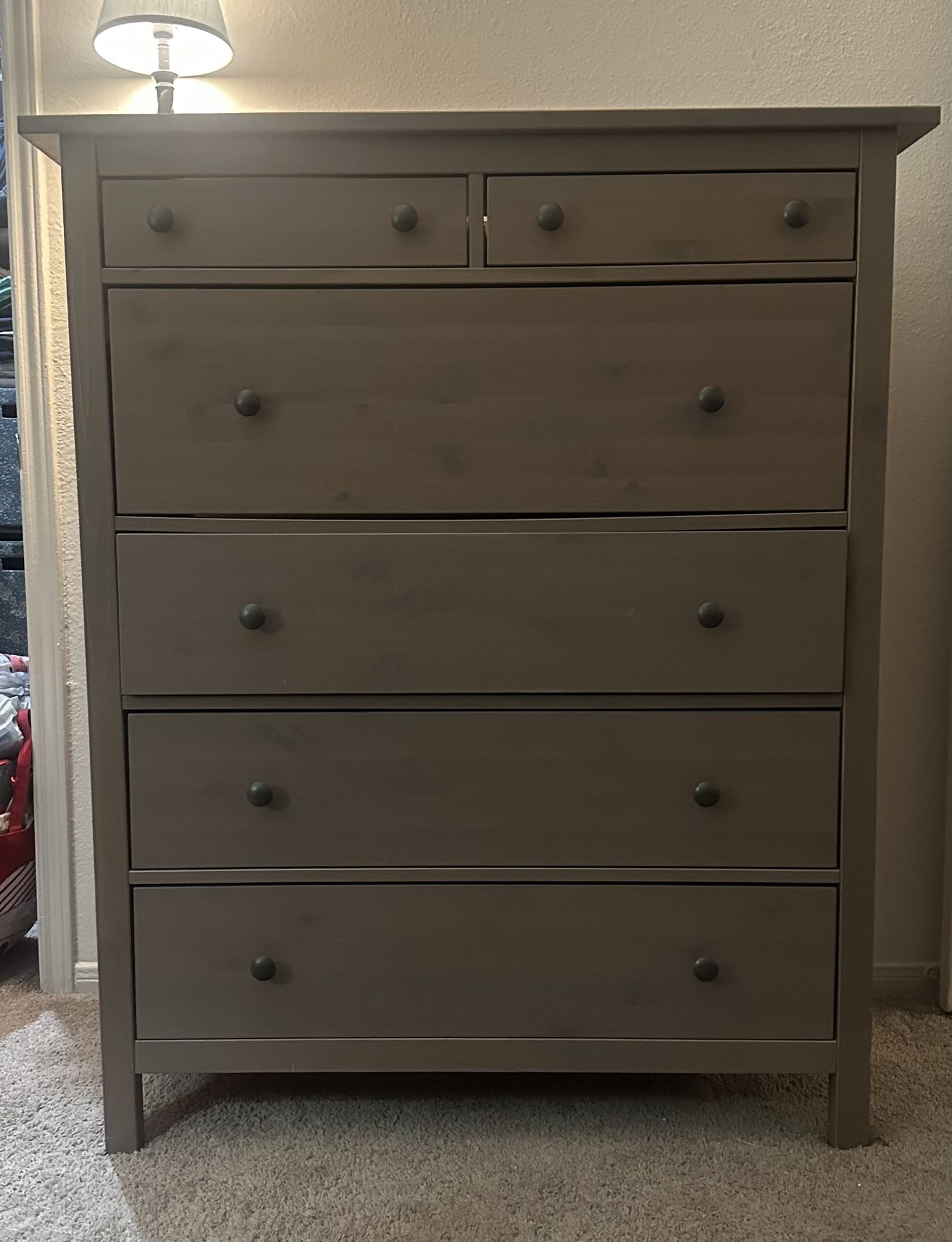 Matching dresser, side table and tv stand Great shape, grey wood. Dresser 51 tall 42 wide 19 1/2 deep 3 bottom drawers 7 1/2 tall 35 wide 17 deep Large drawer 10 tall 35 wide 17 deep 2 small drawers 4 tall 17 wide 17 deep Side table 27 1/2 tall 18 wide 13 1/2 deep 1Drawer 2 1/2 tall 12 wide 9 deep Tv stand 22 tall 49 wide 18 deep 2 drawers 8 tall 22 wide 15 deep 2 cubbies 4 tall 22 wide 16 deep