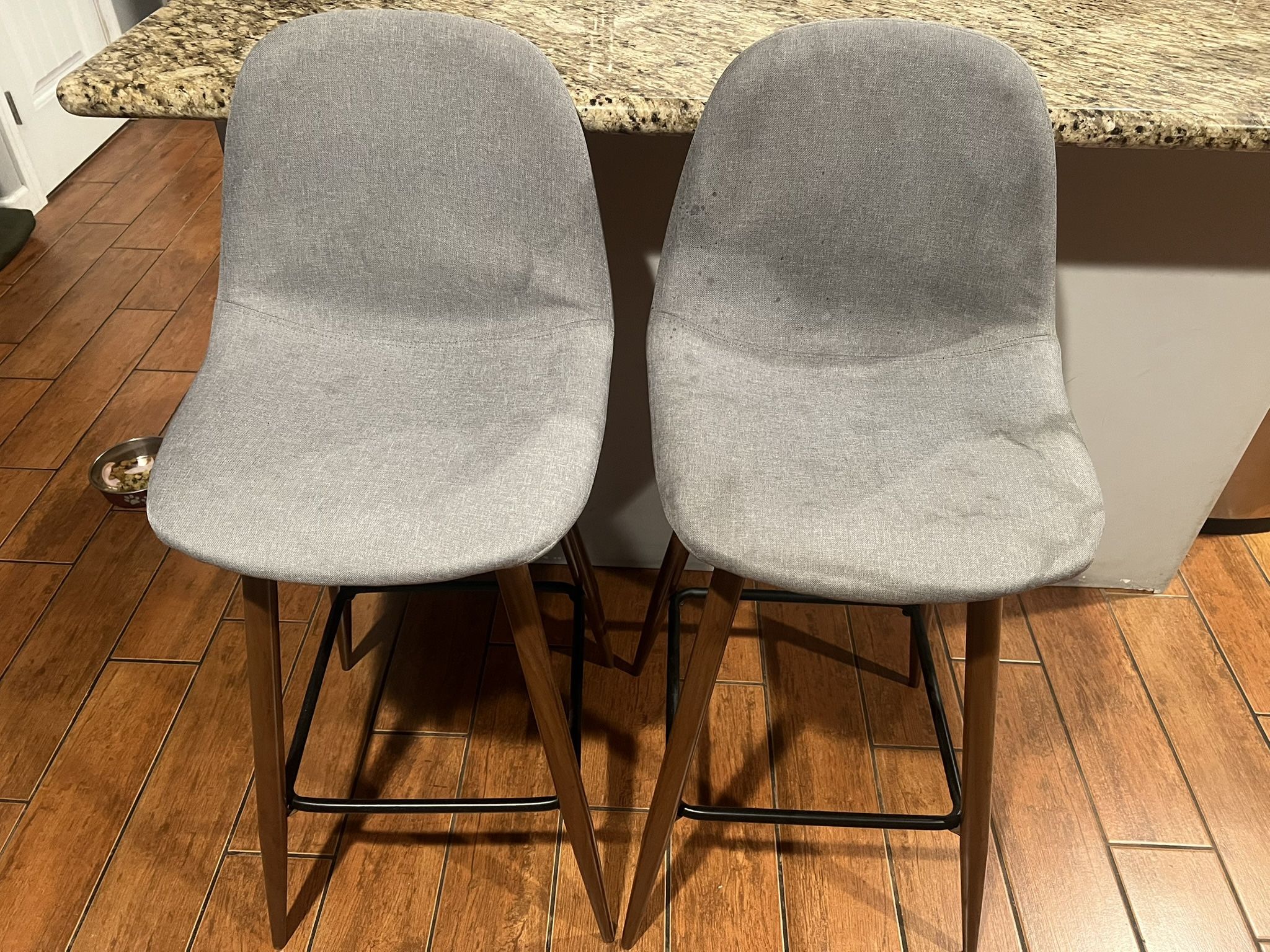 Pebble Set of 2 Bar Stools - 17" x 19" Light Grey Some minor staining. You can probably get them out.