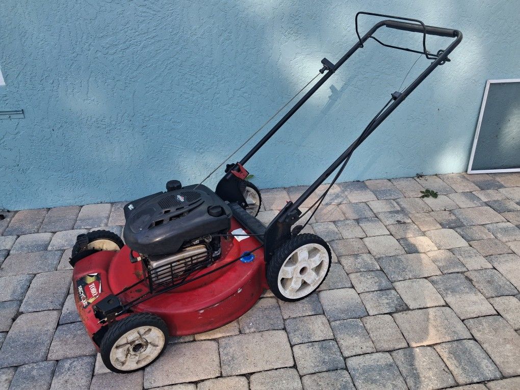 Self-propelled Toro lawnmower 22 Inch deck 190cc guarantee/ready start(No choke/prime) Briggs & Stratton engine Front wheel drive self propelled (New cable) Runs well, starts 1-3 pulls